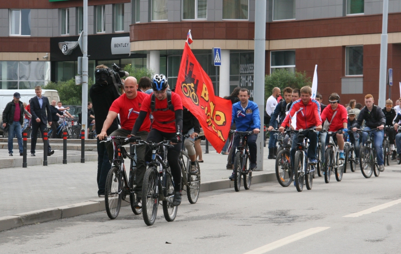По окончании митинга состоялся дружеский велопробег, который объединил около двухсот любителей велосипедного движения. Каждый получил от организаторов праздничную атрибутику: трехцветные флаги и ленты с государственной символикой. В велопробеге приняли участие в том числе депутаты Законодательного Собрания Евгений Артюх и один из организаторов сегодняшней акции Алексей Коробейников.