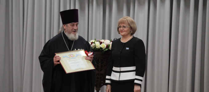 Председатель Законодательного Собрания вручила памятный адрес митрополиту Екатеринбургскому и Верхотурскому Кириллу. Почетными грамотами и благодарственными письмами Законодательного Собрания был отмечен большой вклад в возрождение духовно-нравственных традиций и укрепление гражданского мира ряда священнослужителей и мирян, которые трудятся на благо Екатеринбургской епархии.