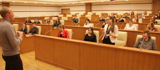 В пятнадцатый раз школьники Свердловской области, слушатели юридической школы, во время весенних каникул получили возможность познакомиться с работой областного парламента. В этом году это были учащиеся 9-11-х классов из Екатеринбурга, Ирбита, Режа, поселка Малышево.
