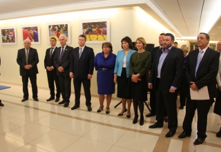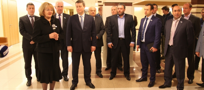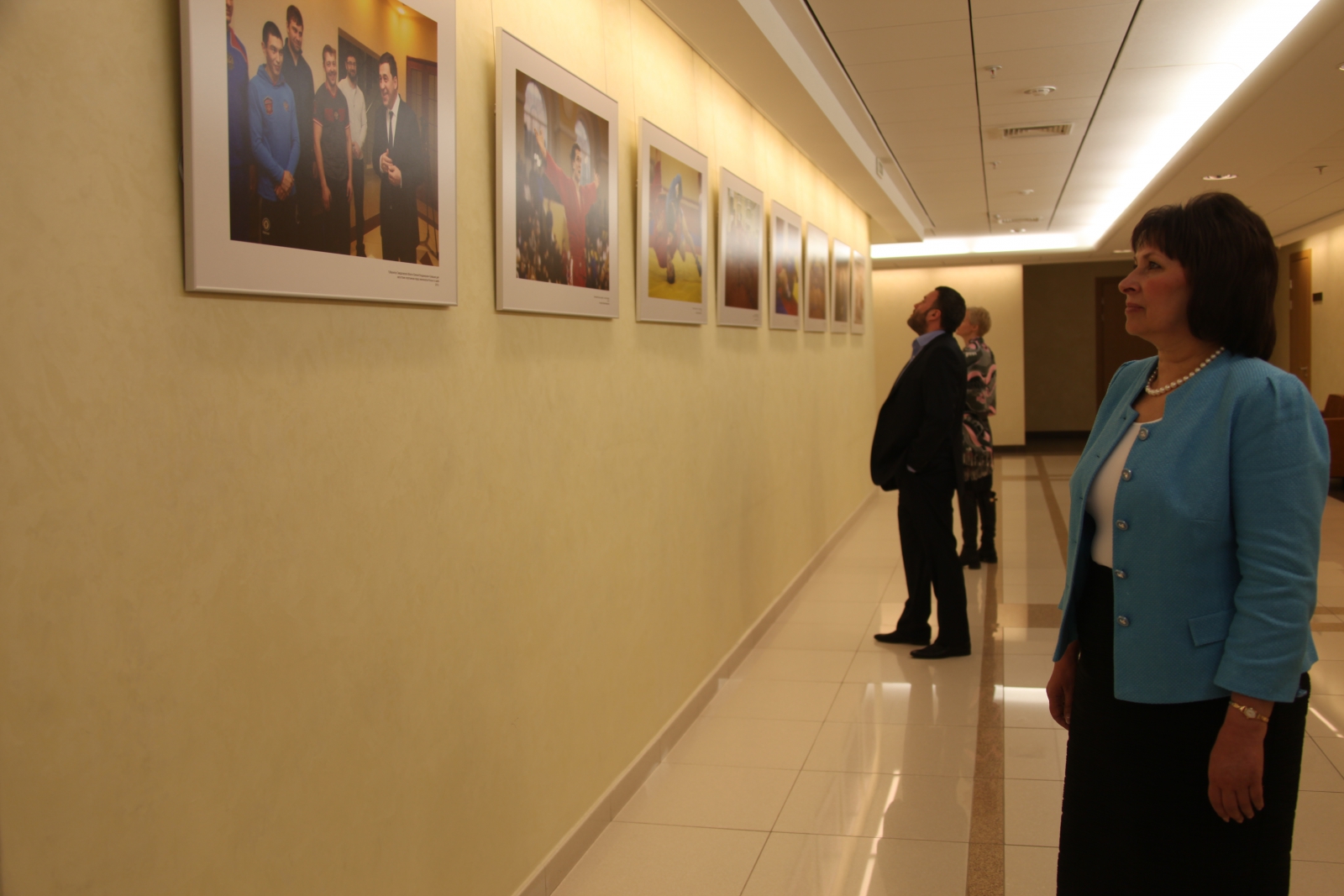 В перерыве очередного заседания Законодательного Собрания депутаты приняли участие в открытии фотовыставки «70-летию Победы – 60 побед свердловского самбо», оформленной в холле третьего этажа здания областного парламента.
