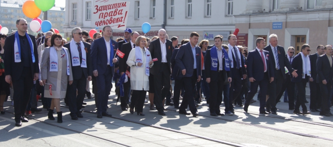 В праздничной колонне, объединившей трудящихся Екатеринбурга, представителей общественных и политических организаций, профессиональных союзов, прошли губернатор Свердловской области Евгений Куйвашев, председатель Законодательного Собрания Людмила Бабушкина, депутаты, члены областного правительства.