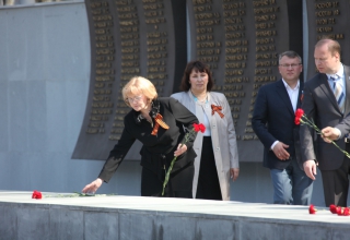 Председатель Законодательного Собрания Людмила Бабушкина, депутаты Законодательного Собрания 5 мая приняли участие в церемонии открытия после реконструкции Широкореченского военно-исторического мемориала.