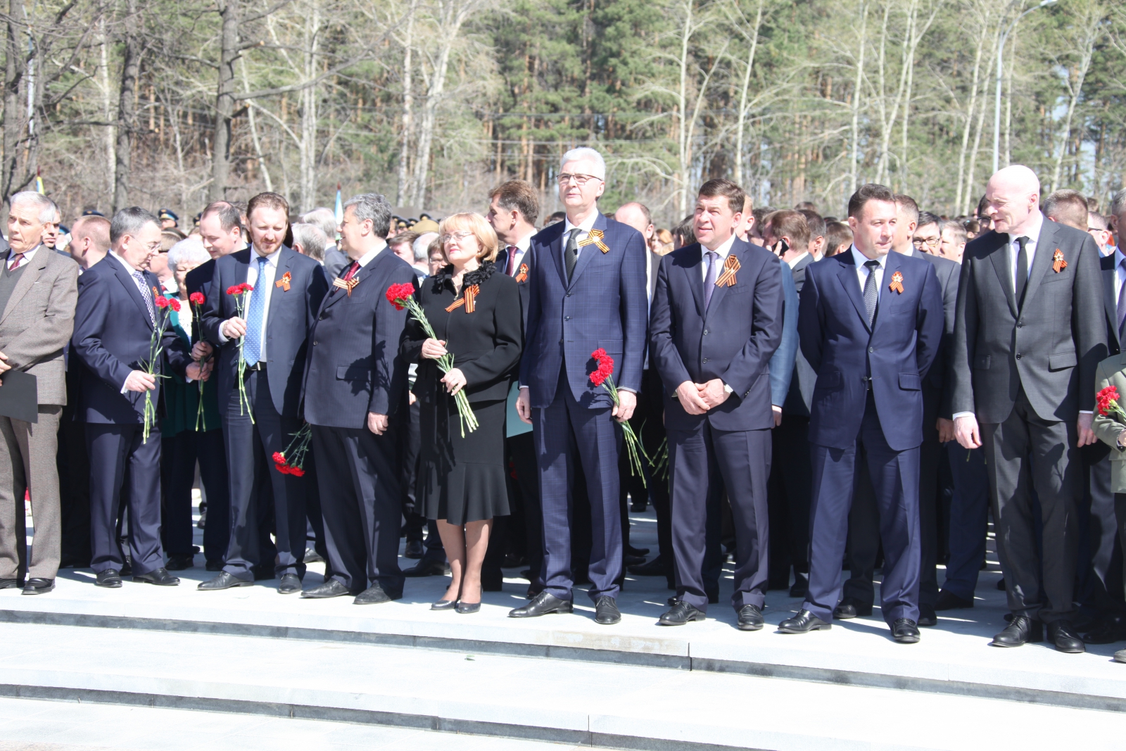 Губернатор Евгений Куйвашев, полномочный представитель президента РФ в УрФО Игорь Холманских, депутаты Законодательного Собрания Свердловской области, а также ветераны, суворовцы, кадеты, студенты, школьники и другие участники церемонии возложили цветы к братской могиле солдатам, погибшим от ран в госпиталях.