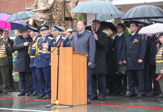 От имени депутатов Законодательного Собрания Свердловской области собравшихся поздравила с 70-летием Великой Победы председатель областного парламента Людмила Бабушкина. Она отметила, что Свердловская область внесла огромный вклад в Победу советского народа в Великой Отечественной войне и сегодня вместе со страной достойно отмечает великую дату. «Наши ветераны еще раз продемонстрировали, что они в строю и остаются для всех поколений примером твердости духа и патриотизма», - подчеркнула Людмила Валентиновна. Председатель Законодательного Собрания пожелала дорогим ветеранам на долгие годы сохранить бодрость духа и оптимистичное настроение юбилейного Дня Победы, которое не смогла испортить уральская непогода.