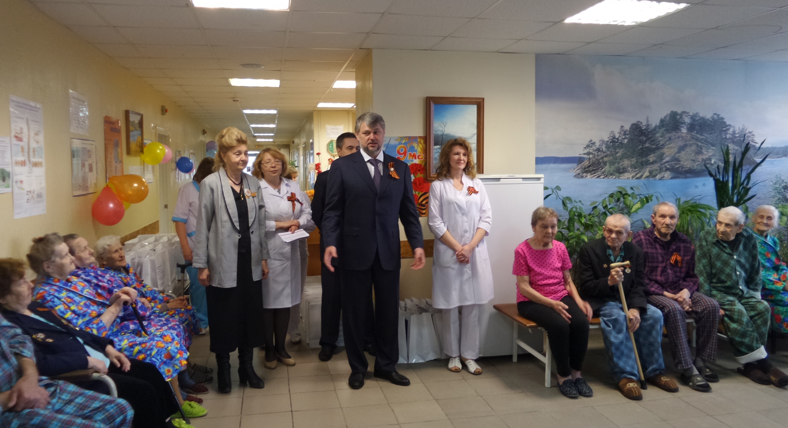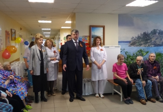 После парада и показательных выступлений воинских подразделений почетные гости, в их числе – депутаты Законодательного Собрания Свердловской области, прошли по отделениям госпиталя, поздравили пациентов и сотрудников с 70-летием Великой Победы, вручили подарки, выслушали просьбы ветеранов.