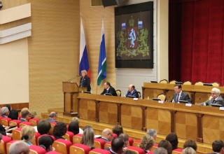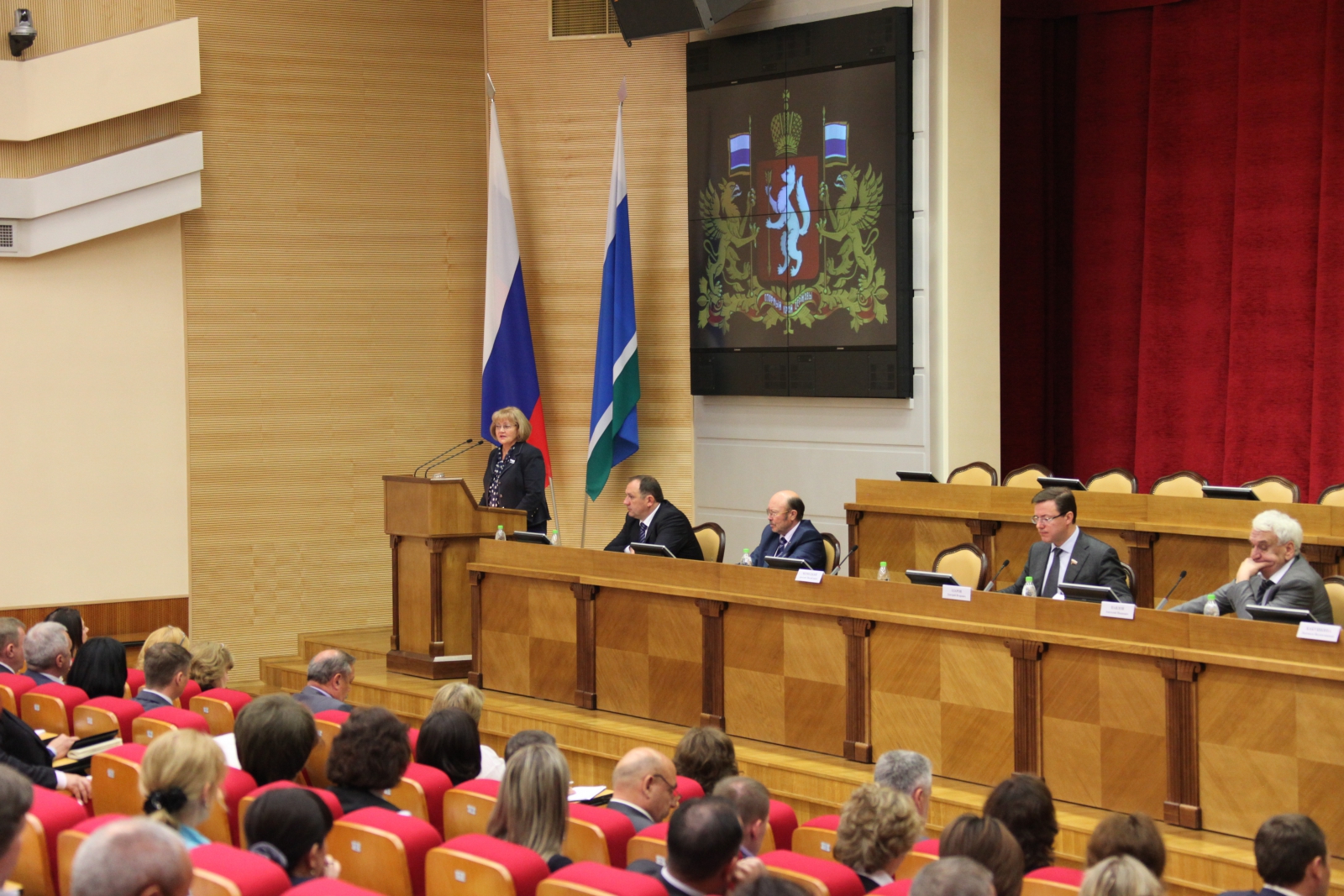 В конференц-зале Дома правительства собрались представители органов местного самоуправления Свердловской, Курганской областей, Ханты-Мансийского автономного округа, а также главный советник аппарата Полномочного представителя Президента РФ в Уральском федеральном округе Виталий Хохлов, заместитель председателя правительства Свердловской области Яков Силин, депутаты Законодательного Собрания Свердловской области.