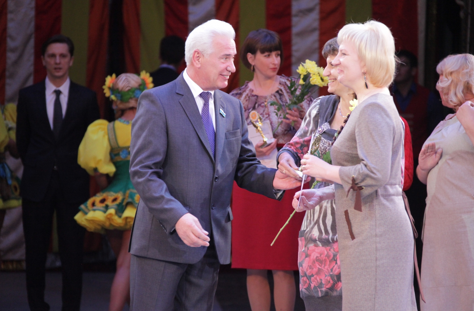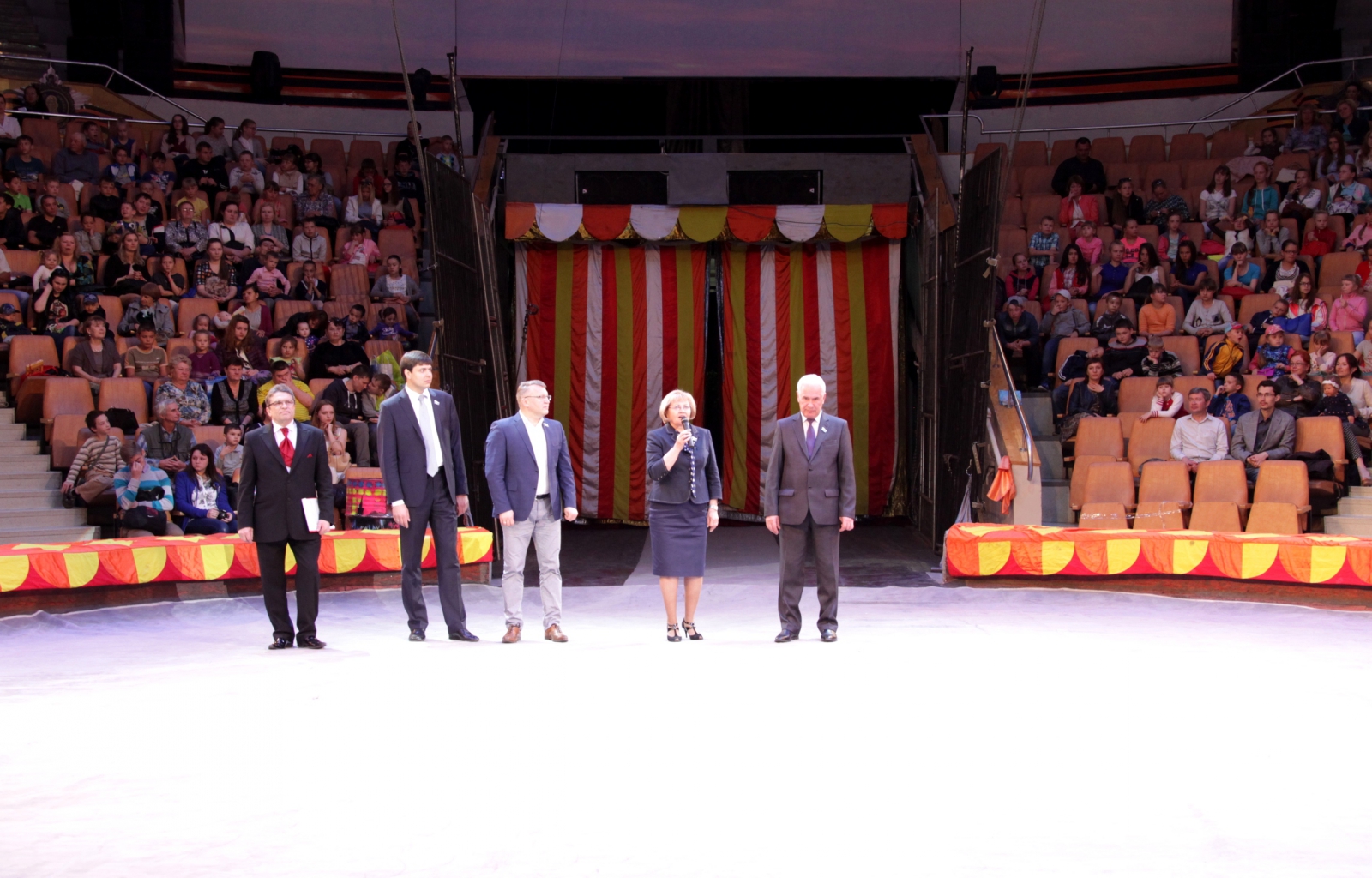 По просьбе председателя зрители поаплодировали депутату Законодательного Собрания, директору Екатеринбургского государственного цирка, народному артисту России Анатолию Марчевскому, главному вдохновителю этого проекта.