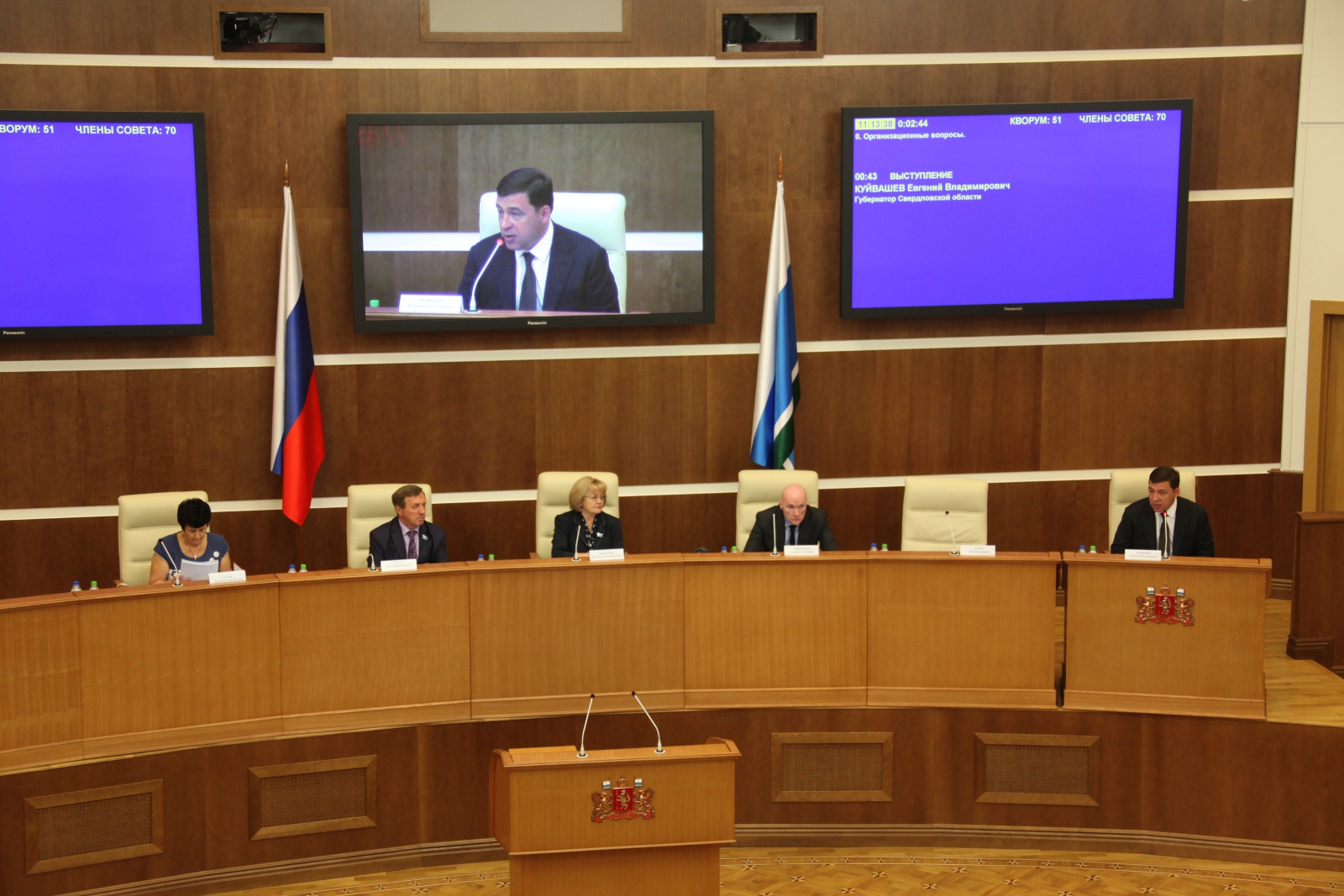 Приветствуя участников двадцатого заседания Совета, губернатор Свердловской области Евгений Куйвашев поблагодарил органы местного самоуправления за работу и конструктивное сотрудничество, за поддержку реализации областных целевых программ, в том числе по созданию новых мест в детских дошкольных учреждениях, предоставлению жилья сиротам, переселению граждан из аварийного жилья. По мнению главы региона, тесное взаимодействие, синхронизация действий правительства области, Законодательного Собрания и органов местного самоуправления позволили выстроить стратегию развития Свердловской области, нацеленную на повышение качества жизни уральцев.