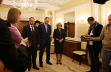 Председатель Законодательного Собрания Свердловской области Людмила Бабушкина и председатель правительства Свердловской области Денис Паслер, исполняющий обязанности губернатора, встретились с прибывшими в Екатеринбург депутатами парламента Республики Молдова - председателем Партии социалистов Игорем Додоном и руководителем фракции Партии социалистов Иваном Чебаном.