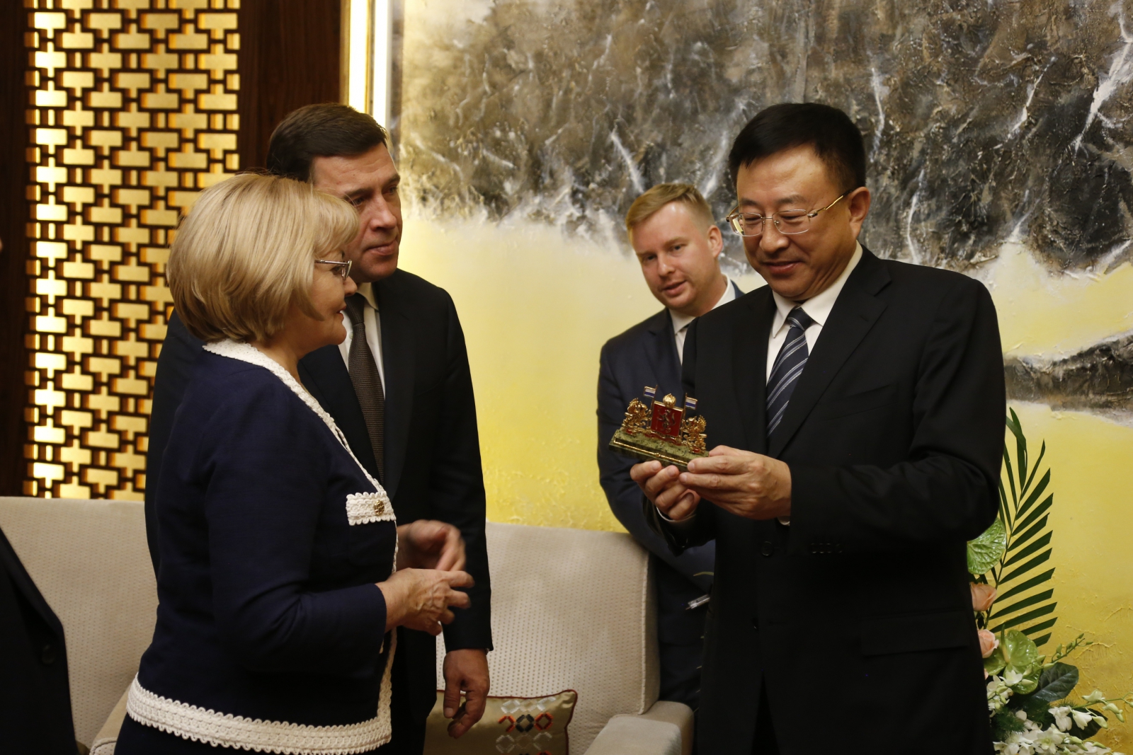 Председатель Законодательного Собрания Свердловской области Людмила Бабушкина в городе Харбине (КНР) в ходе официального визита делегации Свердловской области приняла участие во встрече с первым секретарем харбинского городского комитета Коммунистической партии Китая Чэнь Хайяо и мэром Харбина Сун Сибинем.
