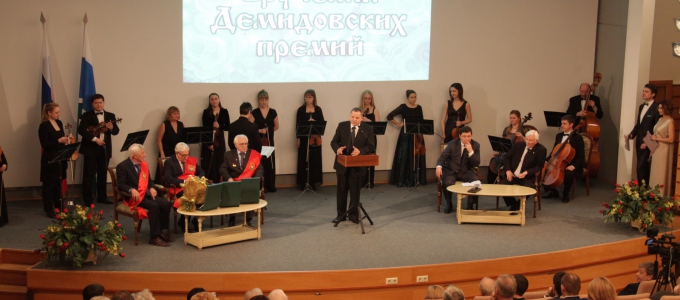 Демидовская премия впервые была учреждена представителем знаменитого рода уральских промышленников и меценатов Демидовых - Павлом Демидовым - в 1832 году для поощрения за труд и подвижнический вклад в развитие науки и вручалась до 1866 года. За это время лауреатами Демидовской премии стали Дмитрий Менделеев, Николай Пирогов, Иван Крузенштерн и многие другие ученые, чьи имена составили славу отечественной и мировой науки. Традиция возобновилась четверть века назад. В новейшей российской истории Демидовские премии сегодня вручались в 23-й раз.