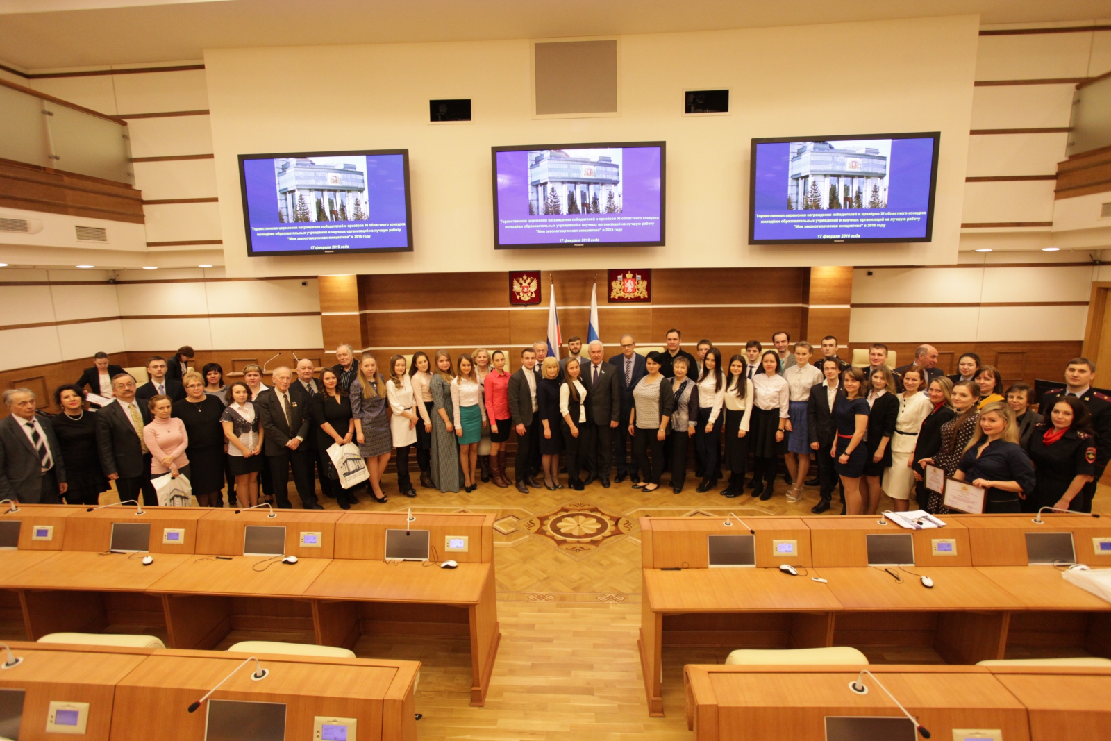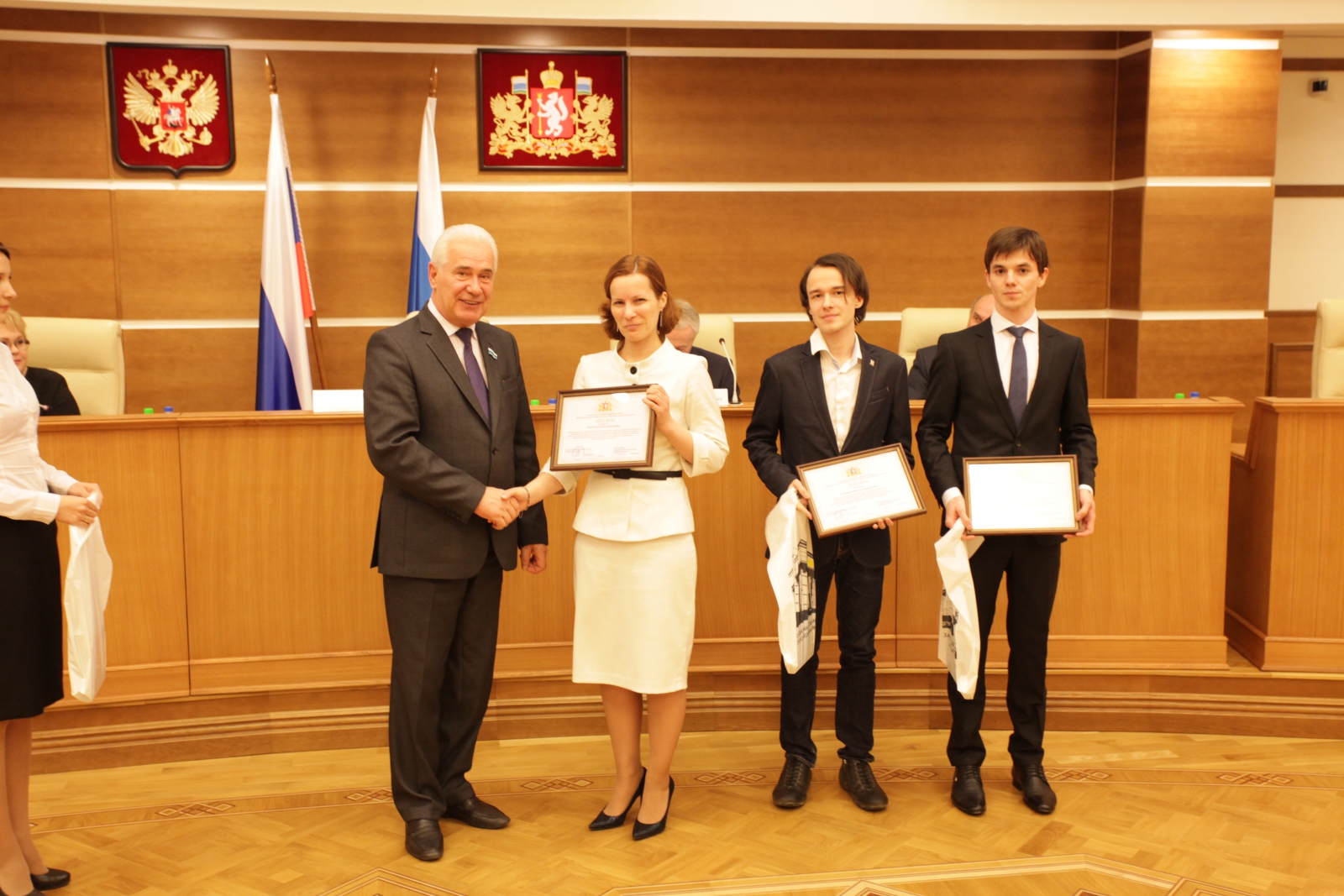 Под председательством Виктора Якимова состоялась торжественная церемония награждения победителей и призеров ХI областного конкурса молодежи образовательных учреждений и научных организаций на лучшую работу «Моя законотворческая инициатива», который традиционно проходит под эгидой Законодательного Собрания и министерства общего и профессионального образования Свердловской области.