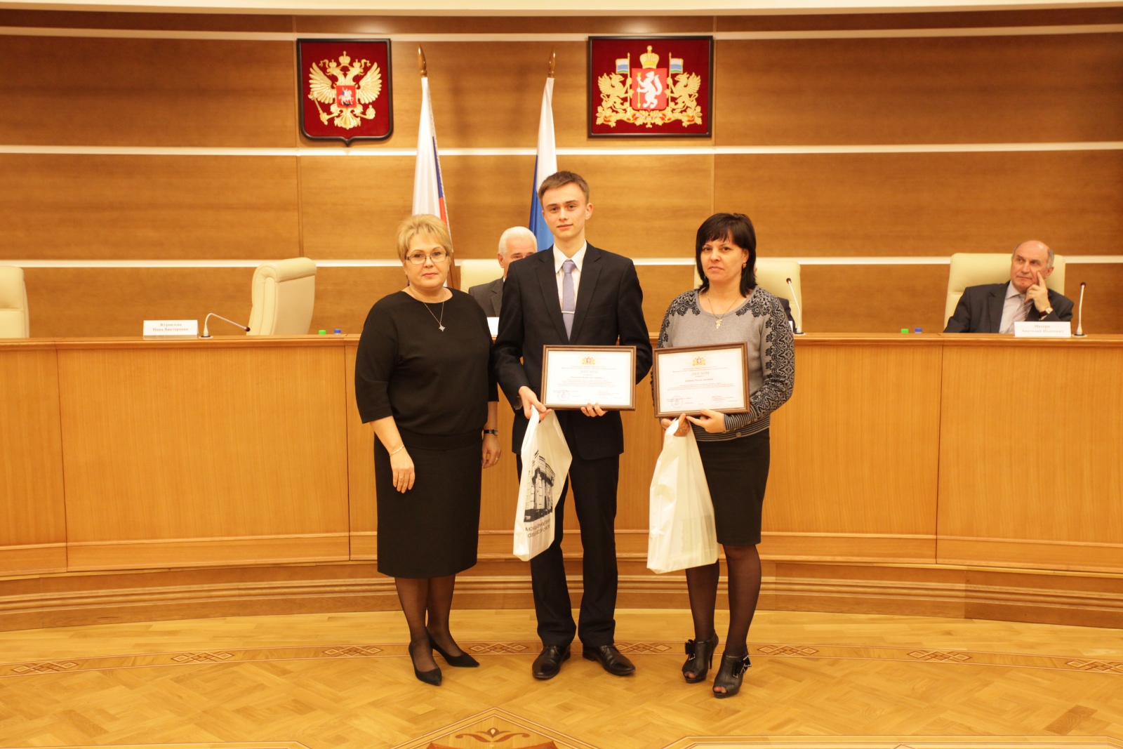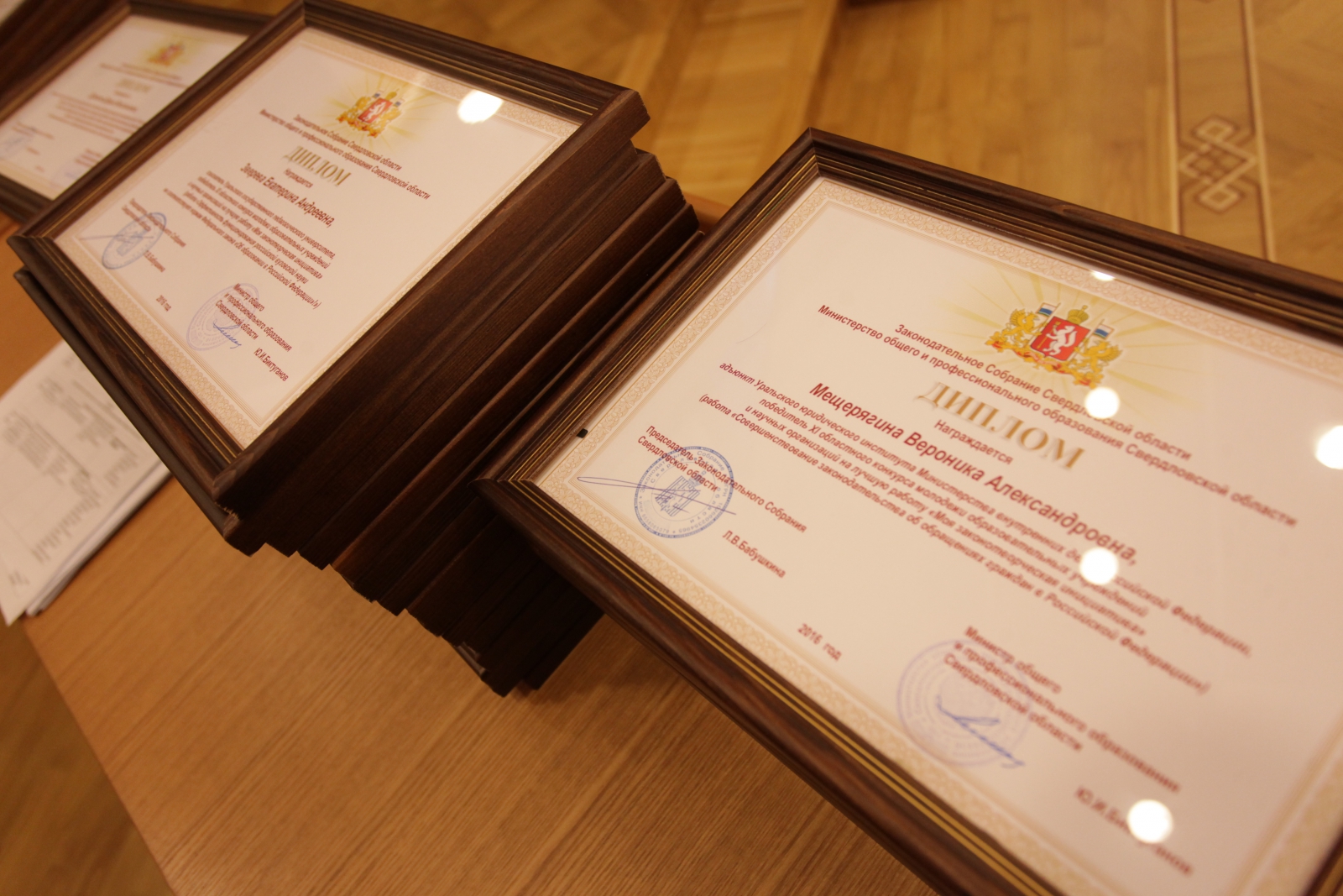 Всего первого места удостоены и награждены дипломами Законодательного Собрания и министерства общего и профессионального образования Свердловской области 17 человек. Еще столько же стали призерами конкурса, заняв второе и третье места. Научные руководители всех победителей и призеров также удостоены почетных дипломов. Представители конкурсных комиссий отмечены благодарственными письмами.