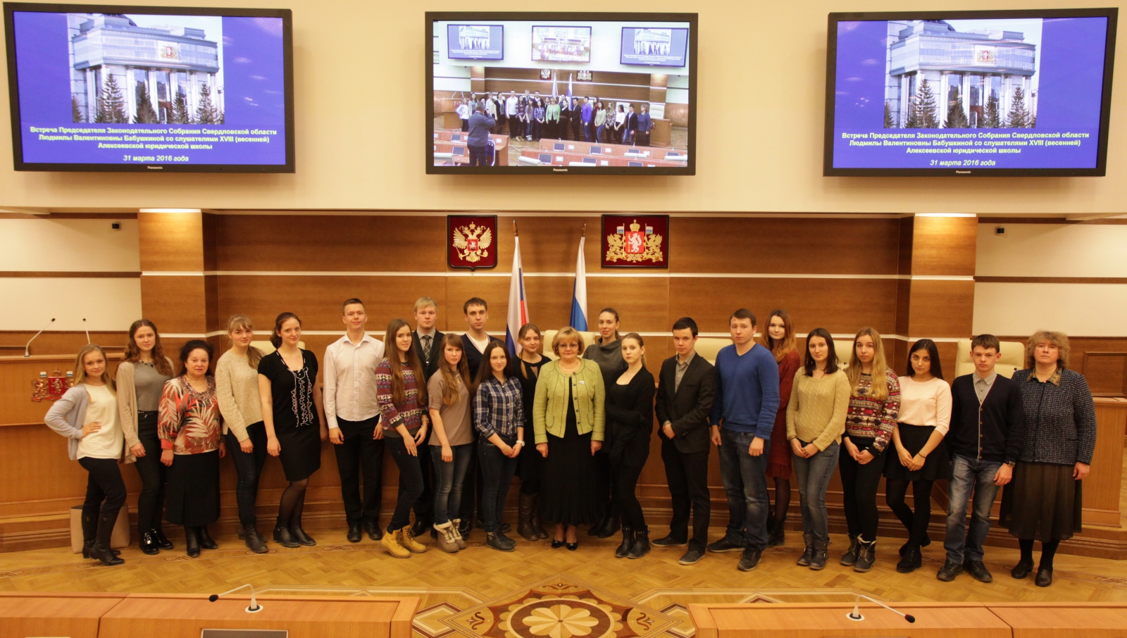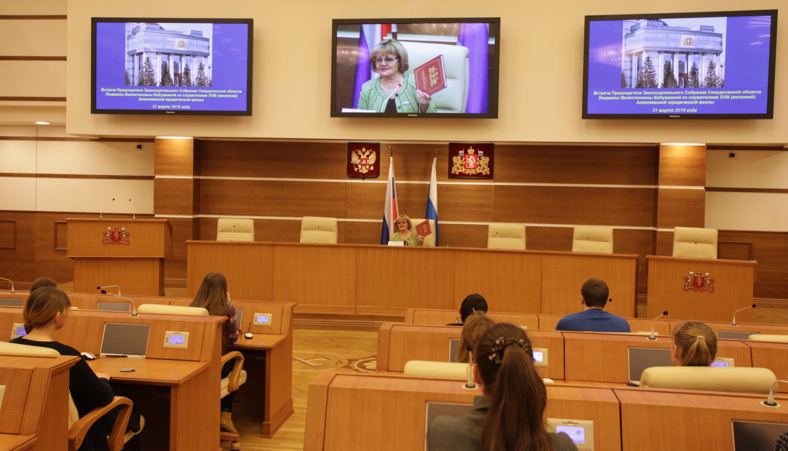 Председатель Законодательного Собрания Людмила Бабушкина провела традиционную встречу со слушателями весенней юридической школы, носящей имя известного уральского юриста Сергея Алексеева.