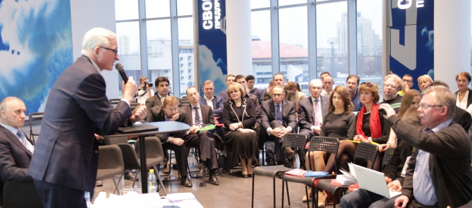 Александр Шохин рассказал о формах взаимодействия и общих интересах бизнеса и государства. Пример – создавая бизнес-школы и корпоративные университеты, предоставляя гранты студентам, поддерживая профессиональное образование, российский бизнес получает квалифицированных работников, а общество – качественную образовательную услугу.