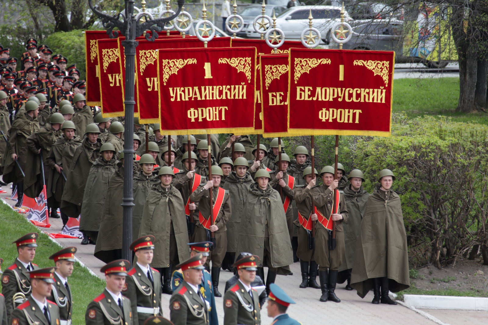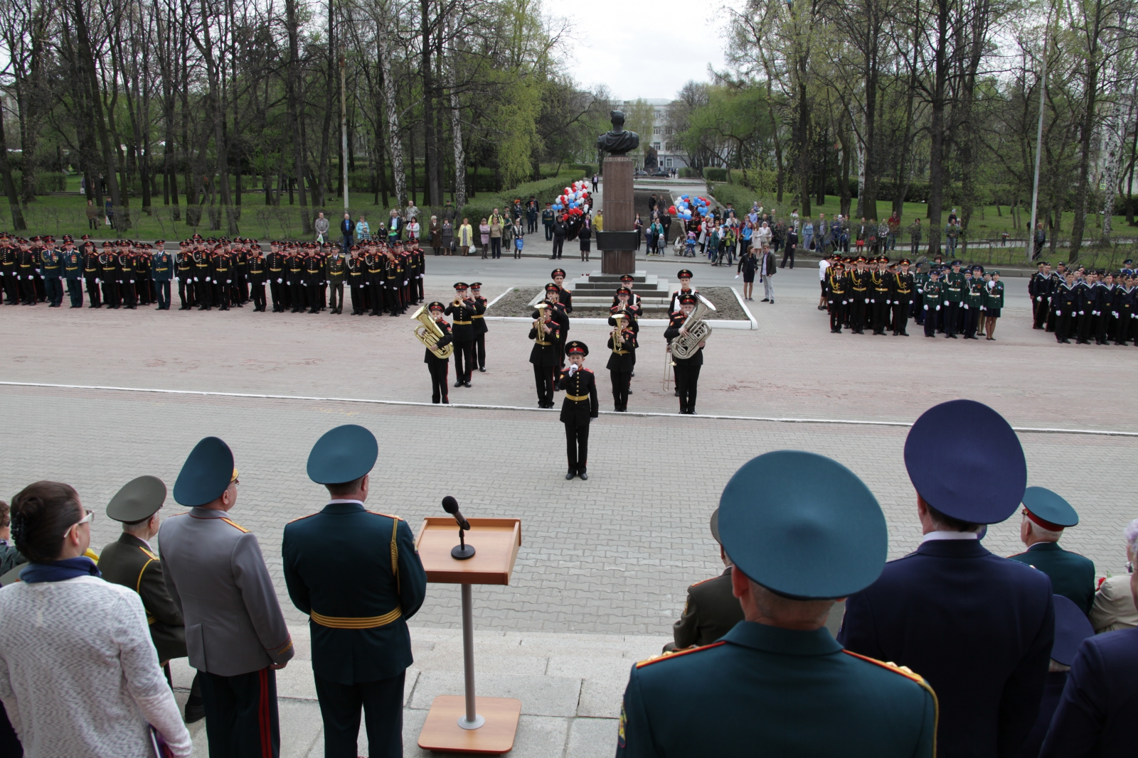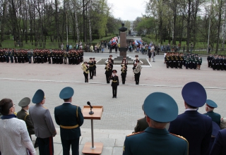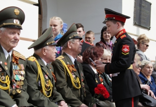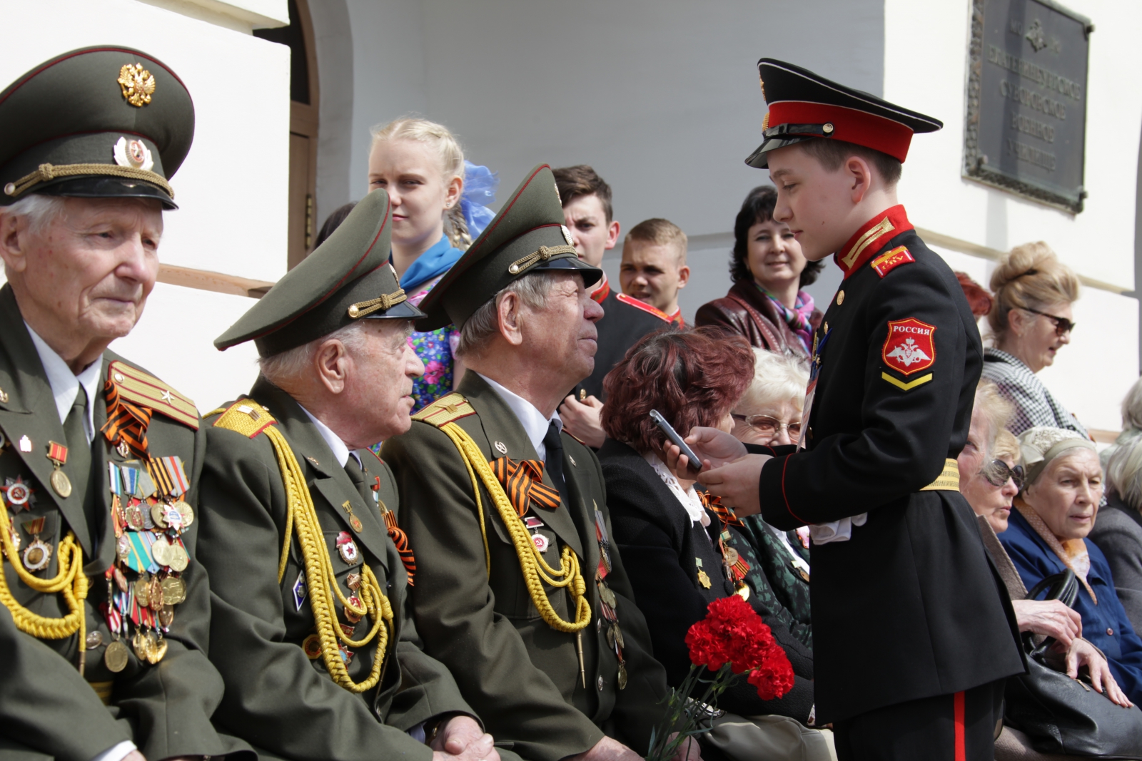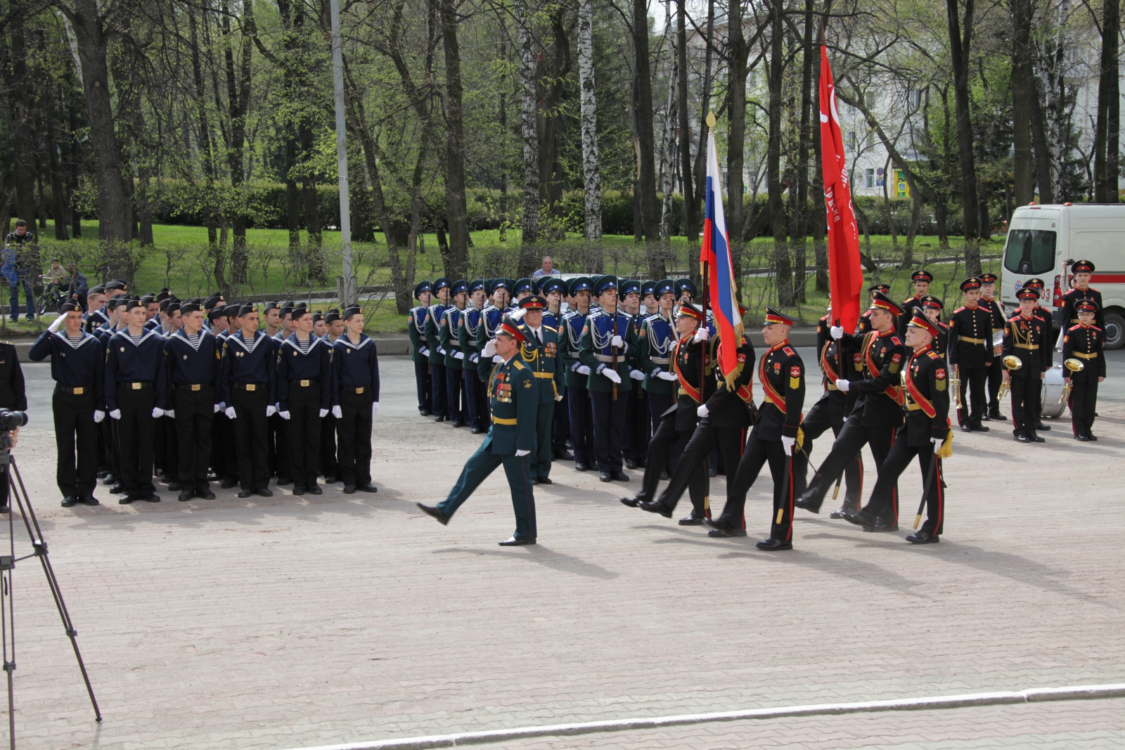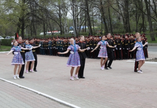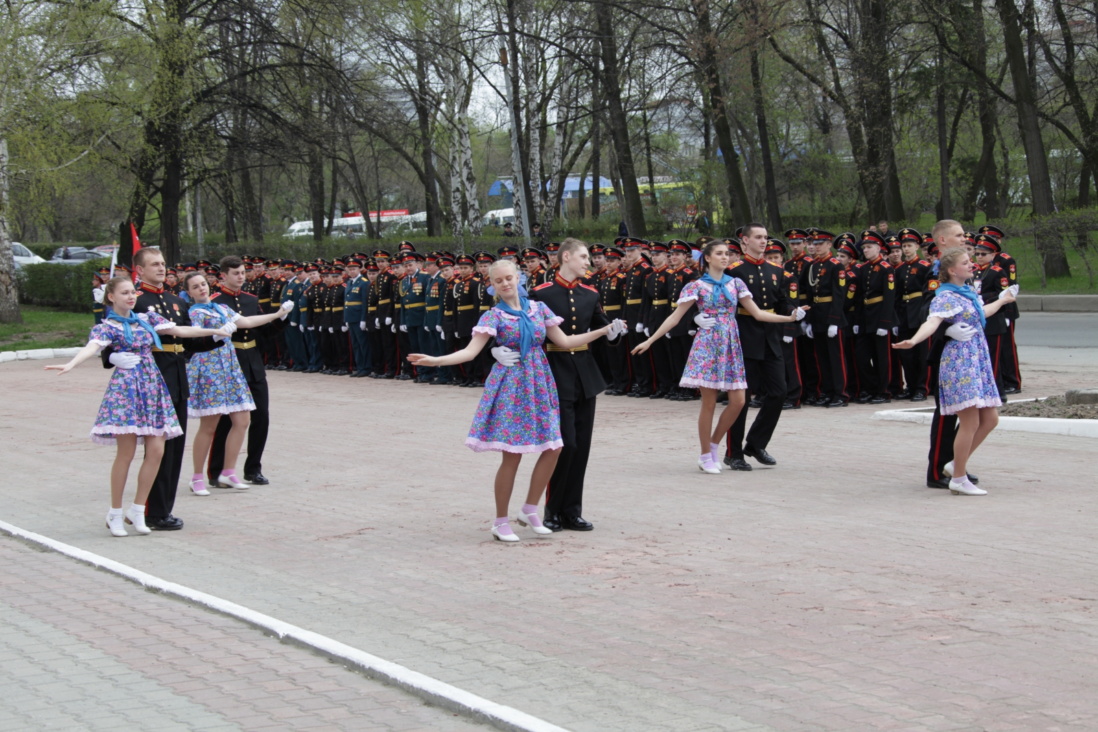 Суворовцы и кадеты выступили с показательными выступлениями и концертными номерами. В одной из прозвучавших песен были такие слова: «С днем рождения, Победа! Ты живешь у нас в сердцах». В завершение в мирное небо взметнулись разноцветные шары.