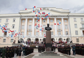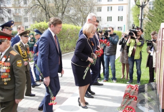Людмила Бабушкина вместе с ветеранами и почетными гостями возложила цветы к памятнику выпускникам Екатеринбургского суворовского военного училища, погибшим при исполнении служебных обязанностей и выполнении интернационального долга.