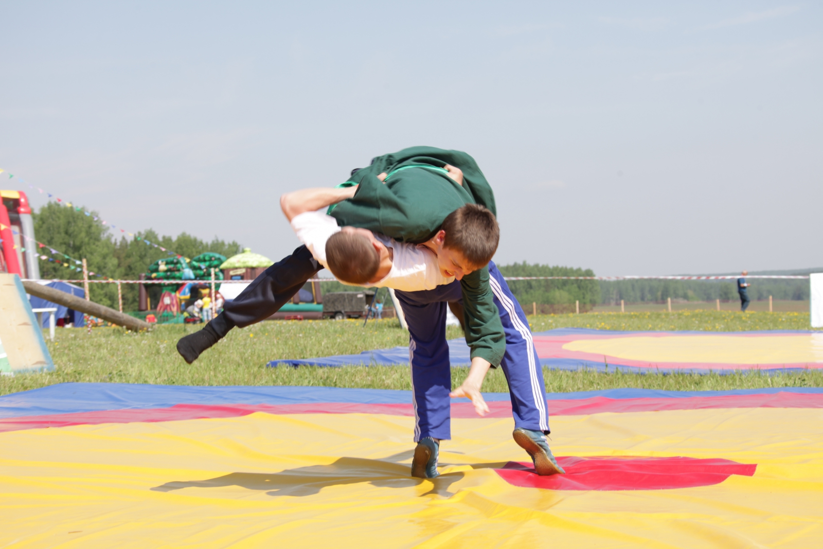 Весело было на игровых площадках Сабантуя. Каждый желающий мог попробовать свои силы и ловкость в борьбе на поясах, лазании на гладко ошкуренный столб, ходьбе по бревну и других забавах. Больше всего болельщиков традицонно собрали участники национальной борьбы «куреш», победитель которой всегда увозит с Сабантуя живого барана. Программа праздника включала также конные скачки. Работали аттракционы для детей.