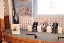 С приветственным словом к собравшимся в зале делегатам конференции обратились президент Торгово-промышленной палаты РФ Сергей Катырин, губернатор Свердловской области Евгений Куйвашев, председатель комитета Государственной Думы ФС РФ по гражданскому, уголовному, арбитражному и процессуальному законодательству Павел Крашенинников.