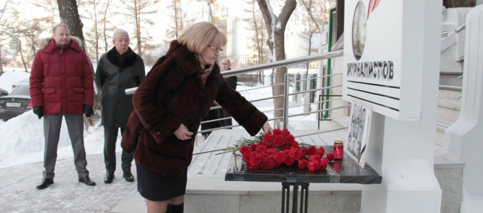 Председатель Законодательного Собрания Людмила Бабушкина, первый заместитель председателя Законодательного Собрания Виктор Шептий приняли участие в траурной церемонии возле Дома журналистов в Екатеринбурге, где возложили цветы в память о жертвах крушения Ту-154.