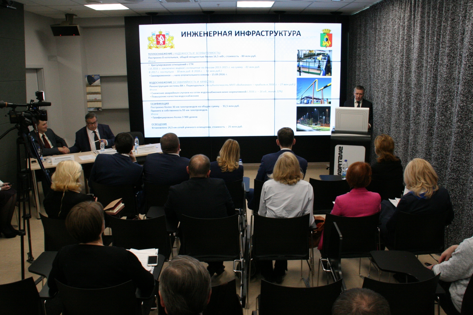 Совещание с участием представителей областных министерств прошло в одном из демонстрационных залов Инновационного центра. Исполняющий обязанности главы администрации Первоуральского городского округа Валерий Хорев рассказал об итогах работы в 2016 году по ключевым направлениям социально-экономического развития территории и обозначил проблемы, решение которых не терпит отлагательства и требует депутатского содействия.