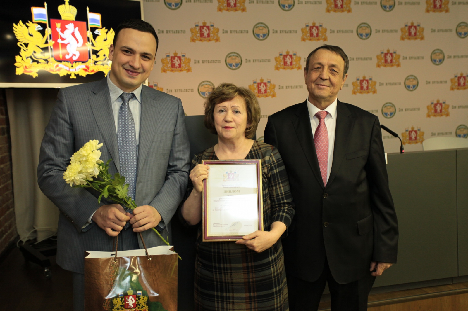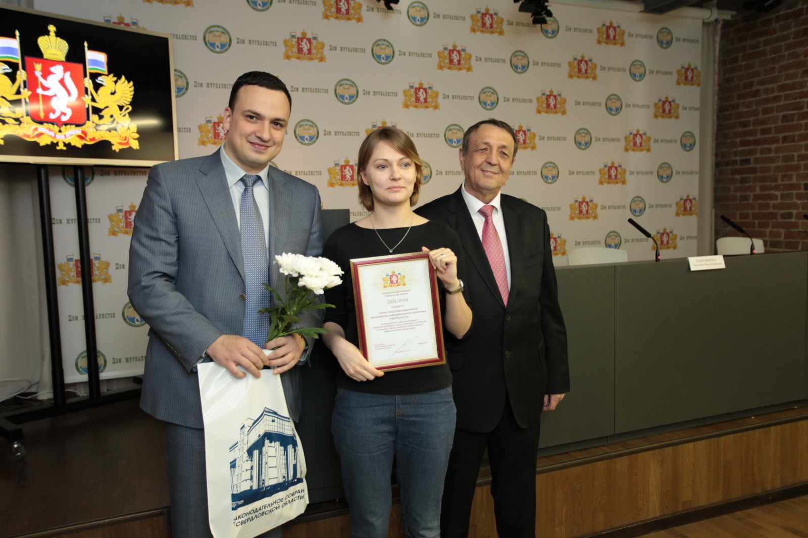 За лучший материал, опубликованный информационными агентствами, дипломами Законодательного Собрания Свердловской области и ценными призами награждены главный редактор регионального информационного центра «ТАСС-Урал» Константин Малых (1 место), обозреватель агентства «УралПолит.Ру» Ольга Балюк (2 место) и корреспондент информационного агентства «Джаст-медиа» Татьяна Рябова (3 место).
