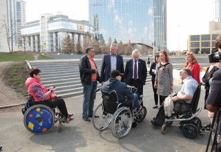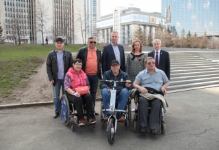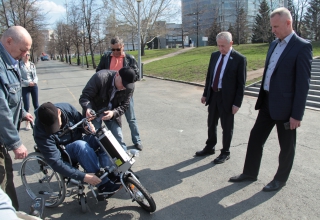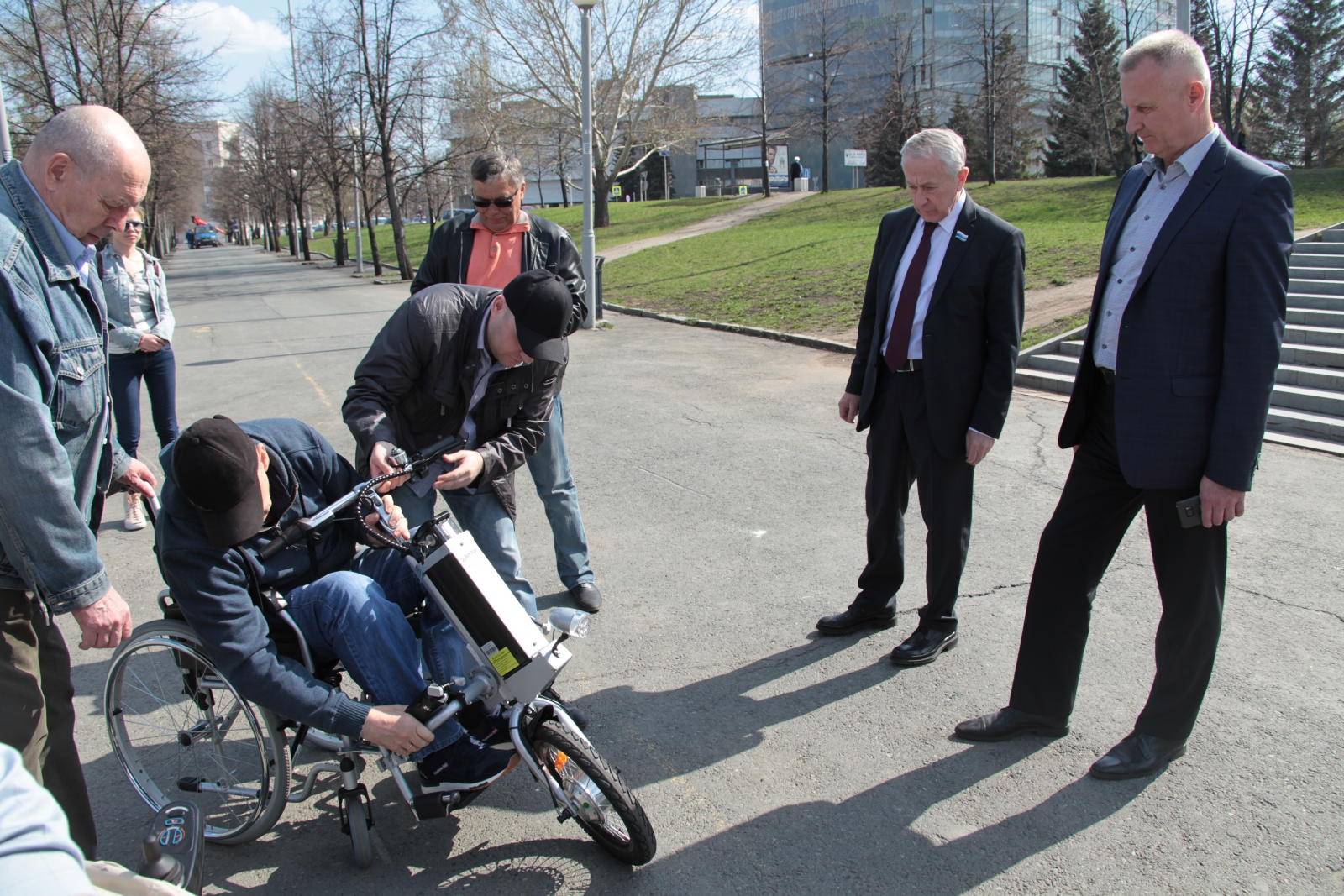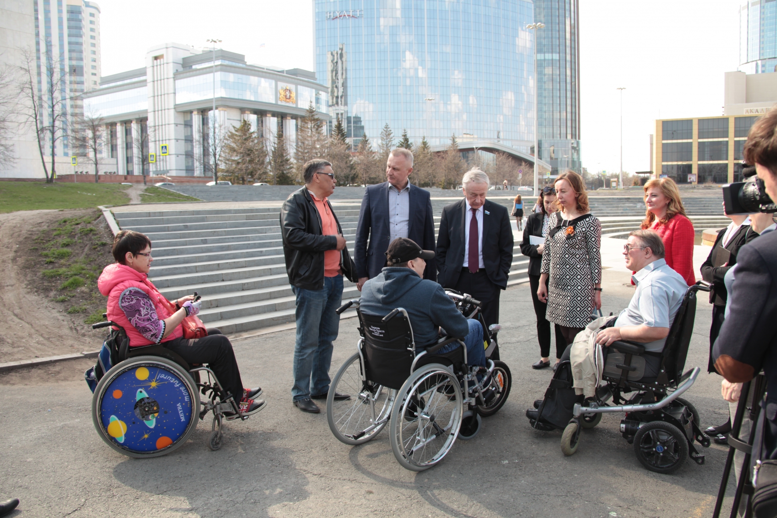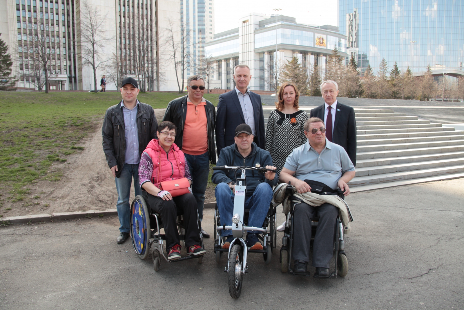 Заместитель председателя Законодательного Собрания Свердловской области Владимир Власов и председатель комитета по социальной политике Вячеслав Погудин приняли участие в презентации мобильной приставки для инвалидных колясок.
