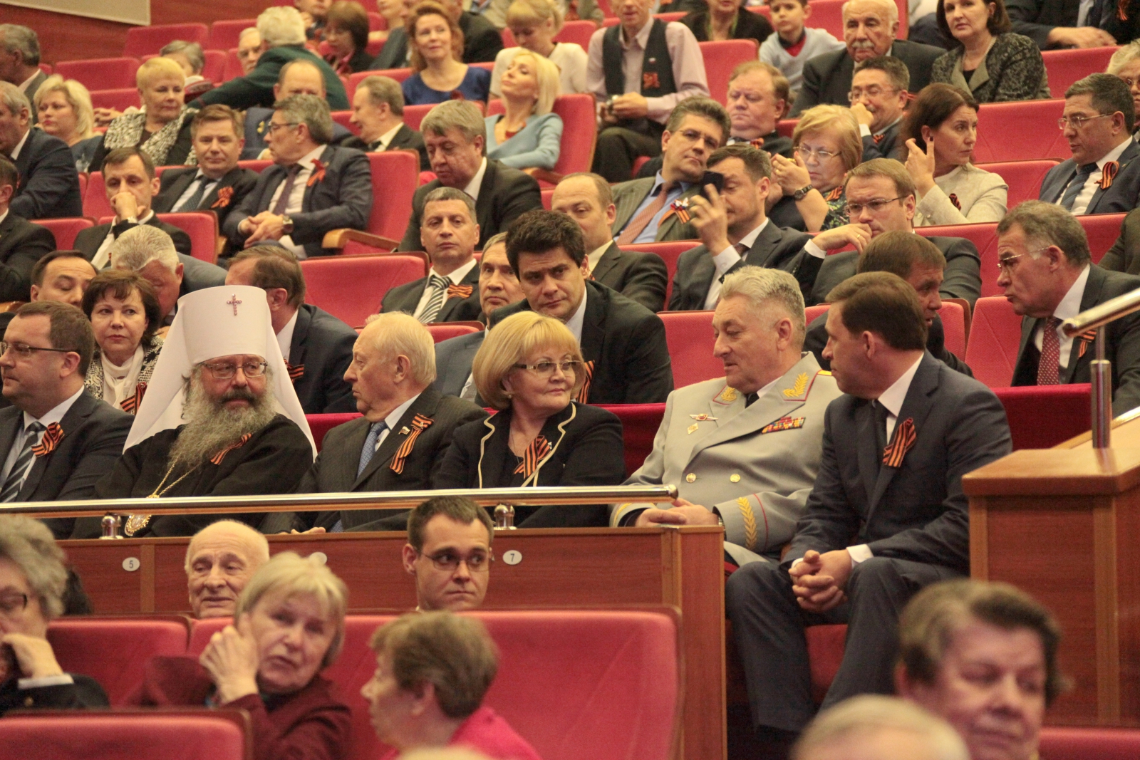 Наряду с ветеранами в торжественном собрании, которое прошло в Театре эстрады, приняли участие члены Совета Федерации, депутаты Государственной Думы, депутаты Законодательного Собрания Свердловской области, члены областного правительства, военачальники Центрального военного округа, работники аппарата Полномочного представителя Президента РФ в Уральском федеральном округе, Почетные граждане Свердловской области, представители религиозных конфессий, общественные объединения и молодежные организации.