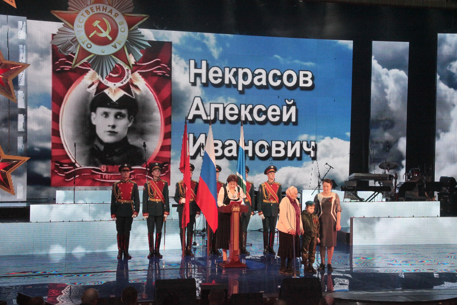 Трогательным моментом торжественного собрания стала церемония возвращения из безвестности имени солдата Великой Отечественной войны Алексея Некрасова. Заместитель председателя Свердловской региональной общественной молодёжной организации «Ассоциация патриотических отрядов «Возвращение» Татьяна Хардина передала родственнникам погибшего воина материалы поисковиков, благодаря которым сегодня в Свердловской области стало на одного безвестно пропавшего солдата меньше.