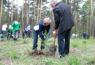 Председатель Законодательного Собрания Свердловской области Людмила Бабушкина вместе с главой региона Евгением Куйвашевым, членами правительства, руководителями администрации Екатеринбурга и волонтерами приняли участие в акции «Лес Победы». В Юго-Западном лесном парке была высажена 1000 сосен. Это 5-7-летние деревья.