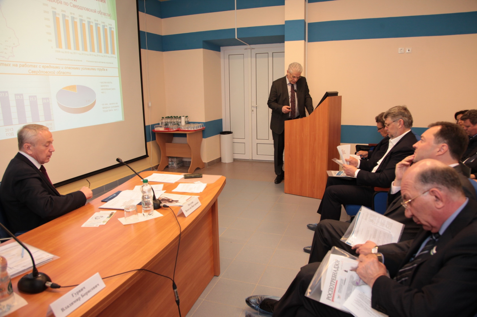 С докладом «О состоянии профпатологической медицинской помощи населению Свердловской области» выступил директор Екатеринбургского медицинского научного центра профилактики и охраны здоровья рабочих промпредприятий Владимир Гурвич. Он обозначил основные проблемы, связанные с оказанием медицинской помощи трудоспособному населению: снижение численности и старение, повышение уровня общей заболеваемости, ухудшение качества и достоверности информации о влиянии гигиенических факторов на здоровье, отсутствие профилактической направленности в оказании помощи. В частности, он привел пример существенной разницы между паспортным и биологическим возрастом у рабочих основных профессий металлургического производства. 38 лет плавильщика по паспорту соответствуют 60 годам его биологического возраста.