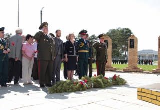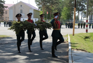 Вместе с руководством дивизии и гостями торжественного мероприятия Людмила Бабушкина возложила цветы к монументу памяти.