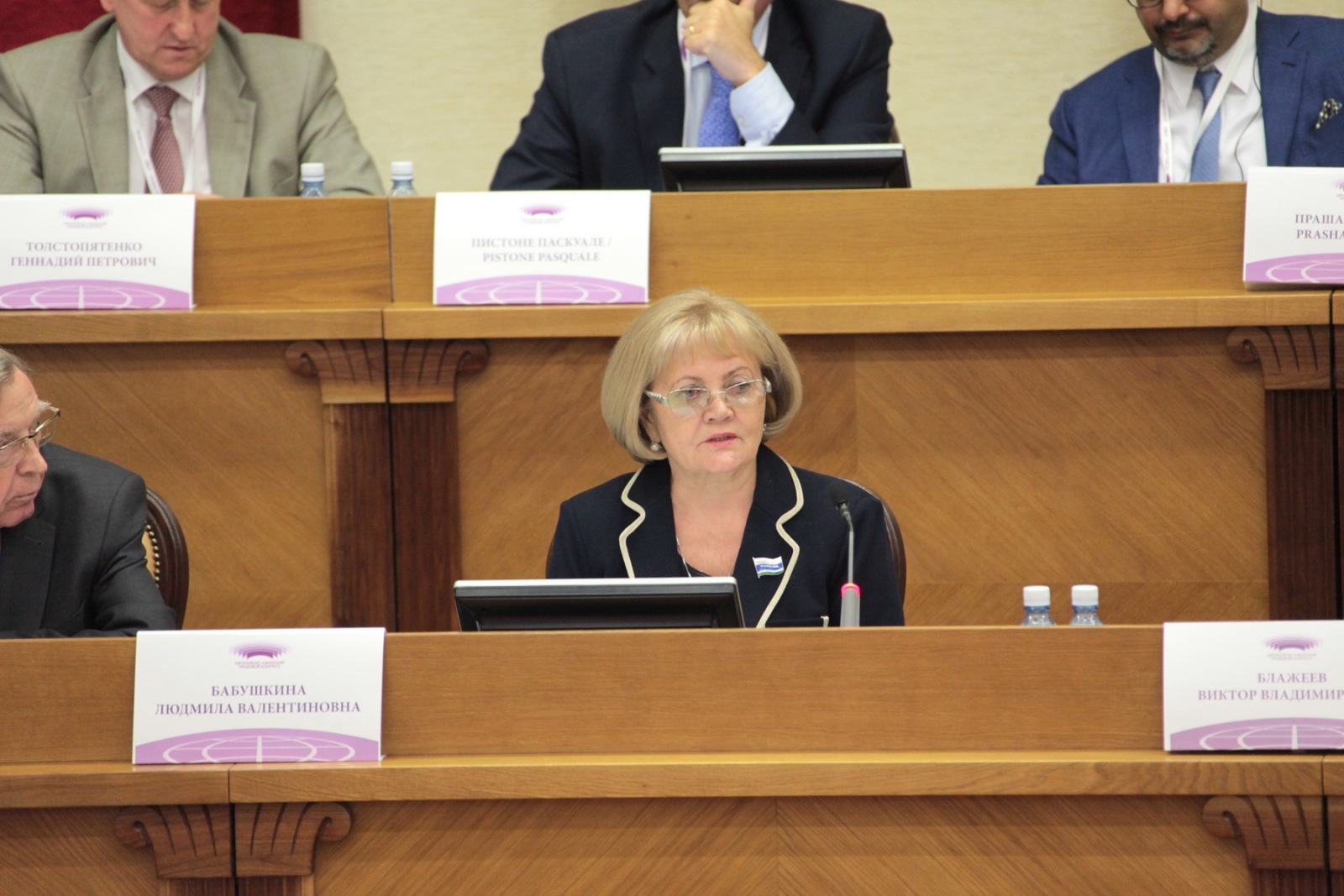 Обращаясь к участникам сессии, председатель Законодательного Собрания Свердловской области, почетный профессор Уральского государственного юридического университета Людмила Бабушкина отметила, что в настоящее время развитие мировой экономики сталкивается с существенными вызовами, среди которых значительный разрыв и диспропорции в социально-экономическом развитии стран и регионов, рост масштабов международного терроризма и неконтролируемой миграции.