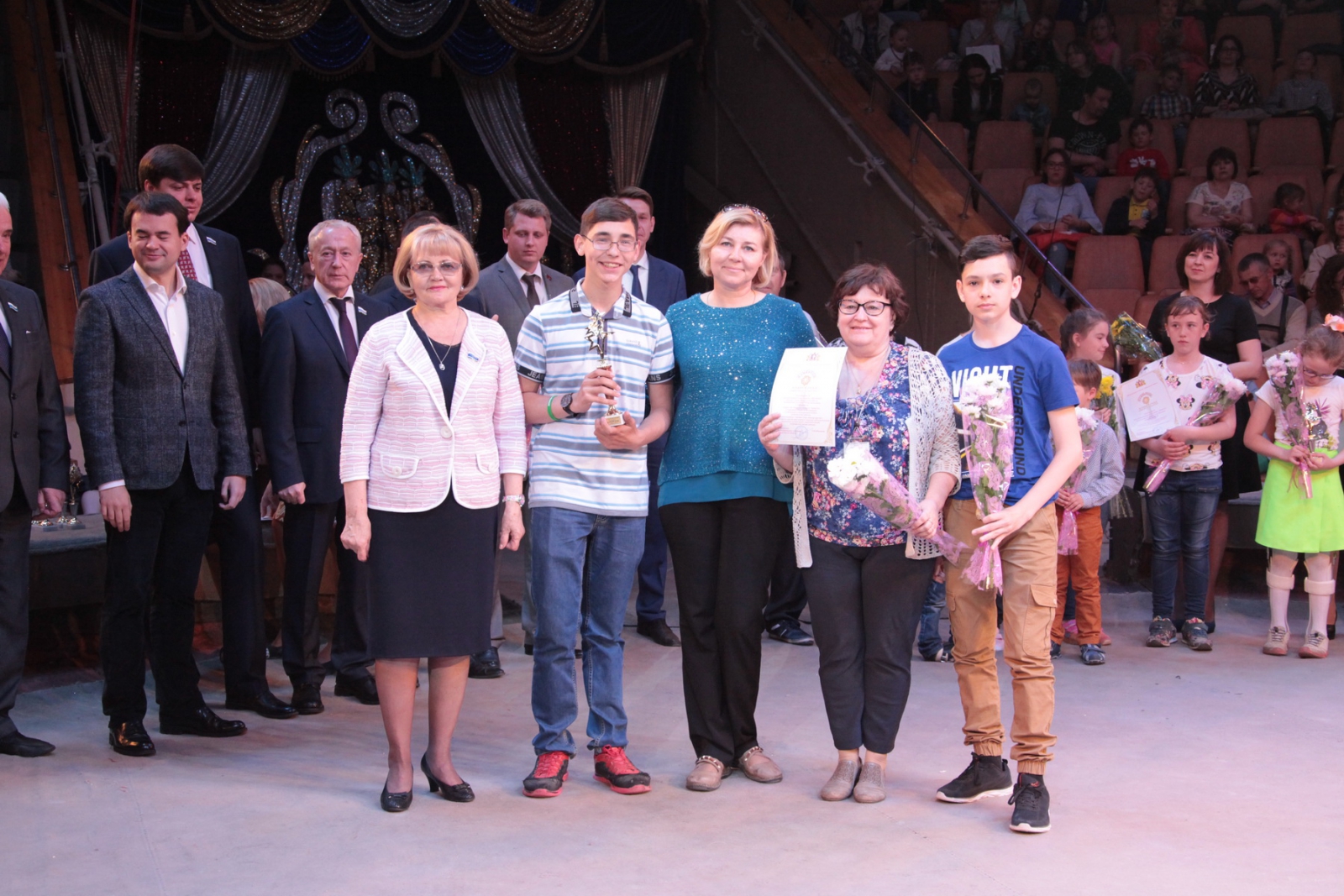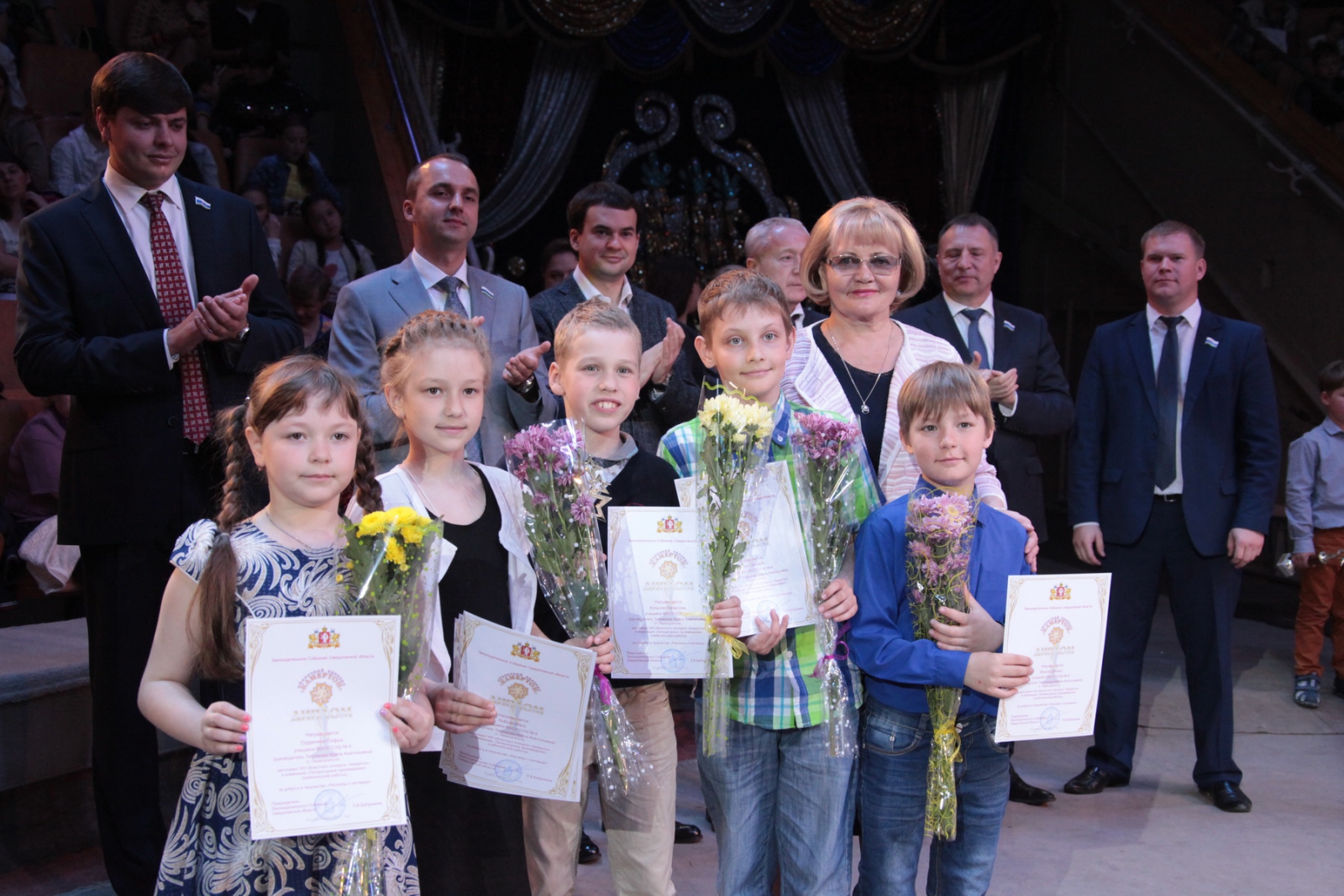 Вместе с Людмилой Бабушкиной и Анатолием Марчевским приветствовали и награждали участников конкурса заместители председателя Законодательного Собрания Владимир Власов, Анатолий Сухов, Виктор Якимов, председатель комитета по социальной политике Вячеслав Погудин, депутаты Игорь Аксенов, Владимир Анисимов, Вячеслав Вегнер, Михаил Зубарев, Михаил Клименко, Елена Трескова.