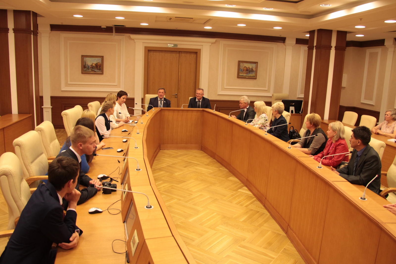 Заместитель председателя Законодательного Собрания Владимир Власов и председатель комитета Законодательного Собрания по вопросам законодательства и общественной безопасности Владимир Никитин провели встречу с делегацией городского округа Верх-Нейвинский.