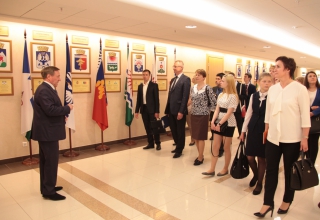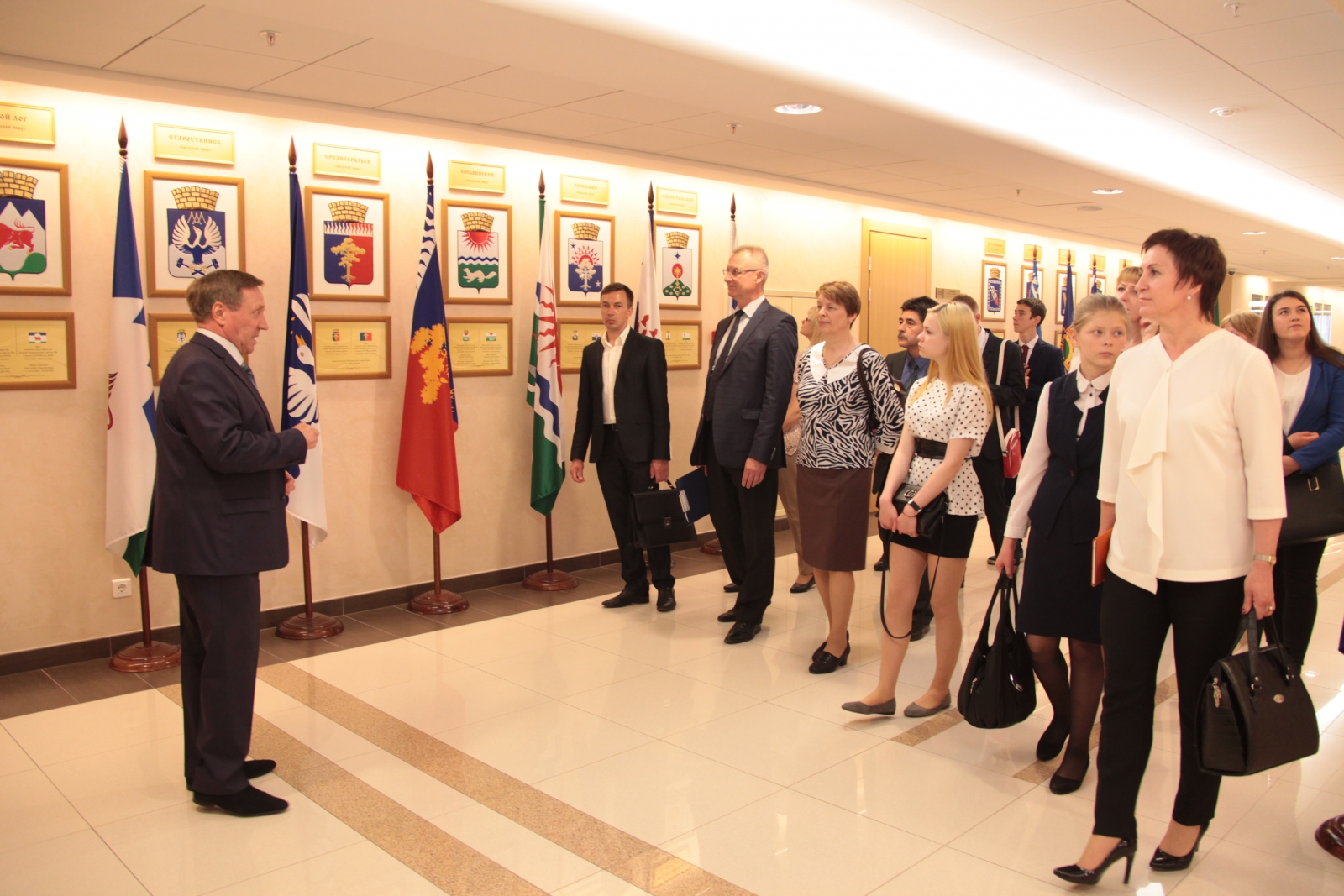 В составе делегации – депутаты Думы городского округа во главе с председателем думы Ю.В.Багаряковой, глава городского округа – Е.С.Плохих, члены школьной Думы образовательного учреждения имени Героя Советского Союза А.Арапова.
