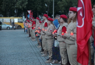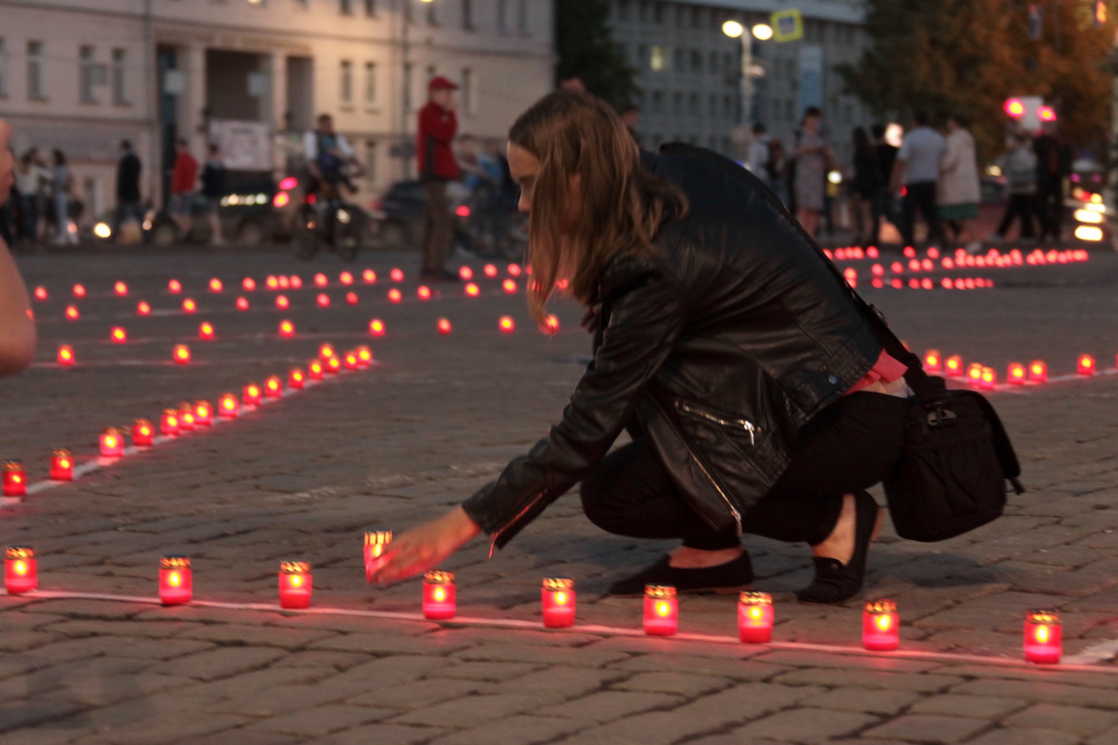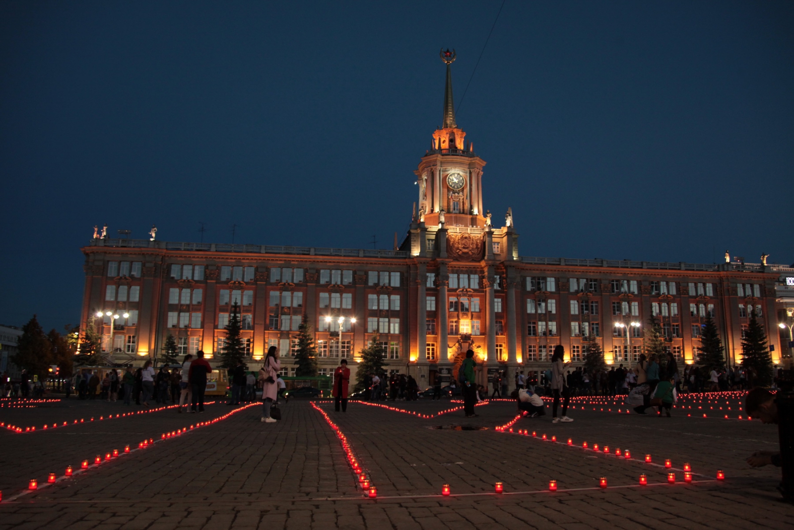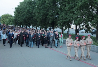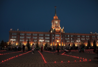 В память о людях, отдавших свои жизни за Родину, о тех, кто умер в госпиталях, в память о ветеранах, которые покинули нас уже после войны, люди со свечами в руках прошли колонной от дома Севастьянова до площади имени 1905 года, где составили из свечек слово «Помним».