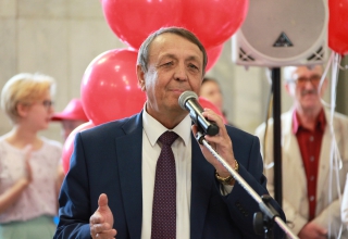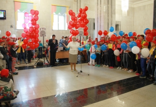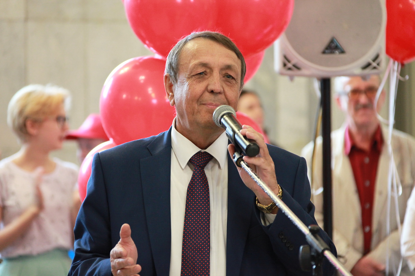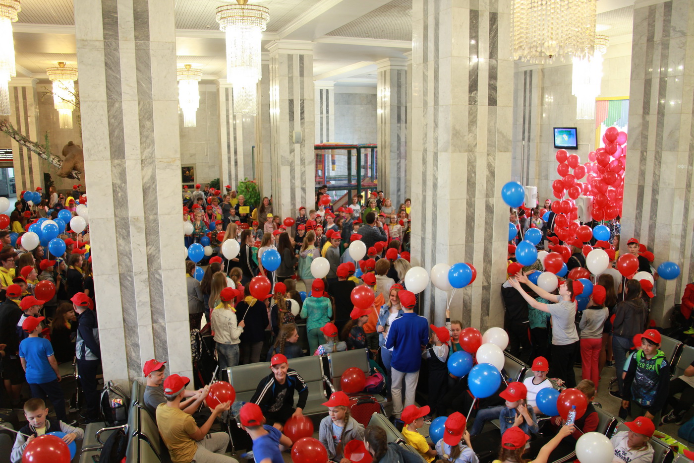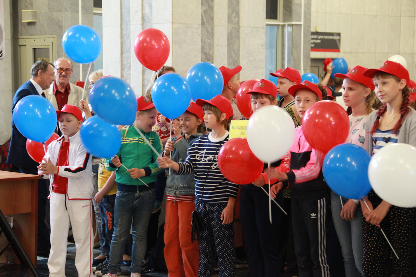 На железнодорожной станции «Екатеринбург-Пассажирский» прошел торжественный митинг с участием руководителей исполнительной, законодательной власти, органов местного самоуправления, профсоюзов, Свердловской железной дороги. Из-за дождливой уральской погоды мероприятие, обычно проходящее на платформе перед поездом, перенесли в помещение зала ожидания. В числе почетных гостей были заместитель председателя Законодательного Собрания Свердловской области Анатолий Сухов, первый заместитель министра общего и профессионального образования Свердловской области Нина Журавлева.