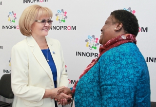 «Мы поздравляем Российскую Федерацию с такой важной и интересной выставкой, как ИННОПРОМ. В прошлом году от ЮАР участвовала только одна компания, в этом году уже три – бизнес заинтересован в сотрудничестве с Россией и Свердловской областью. Но мы не только выставляем свою продукцию, мы прошли по стендам, не могли обойти стенд Свердловской области, так как вы наши партнеры, и это нам очень интересно. Я благодарю госпожу председателя Законодательного Собрания Свердловской области за те усилия, которые она прилагает для развития отношений на межрегиональном уровне», – сказала чрезвычайный и полномочный посол Южно-Африканской Республики в Российской Федерации Номасонто Мария Сибанда-Туси.