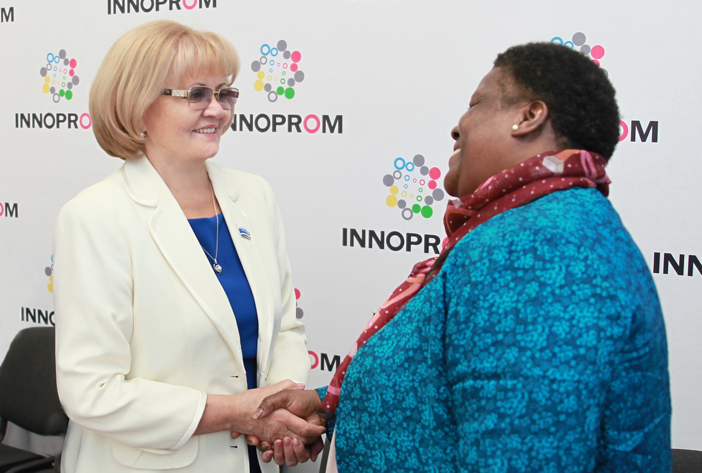 Председатель Законодательного Собрания Свердловской области Людмила Бабушкина и чрезвычайный и полномочный посол Южно-Африканской Республики в Российской Федерации Номасонто Мария Сибанда-Туси обсудили вопросы гуманитарного и экономического сотрудничества на полях международной промышленной выставки ИННОПРОМ.