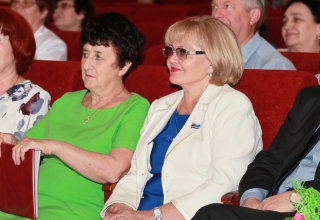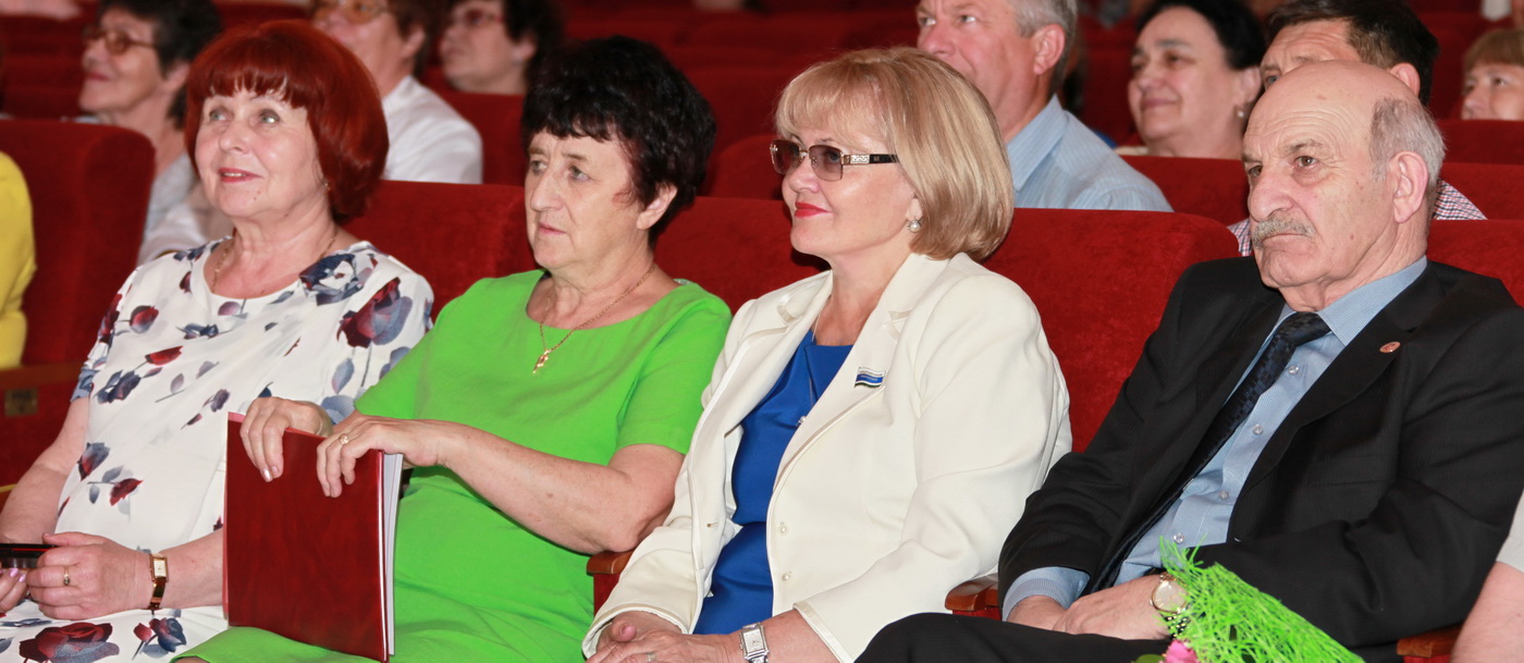 Людмила Бабушкина вручила памятный адрес и подарки председателю Совета ветеранов Алле Ивановне Бродовиковой и ее предшественникам - Маргарите Ивановне Полуяктовой и Алефтине Филипповне Васиной, возглавлявшим ветеранскую организацию в течение тринадцати и десяти лет.