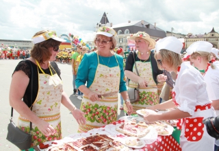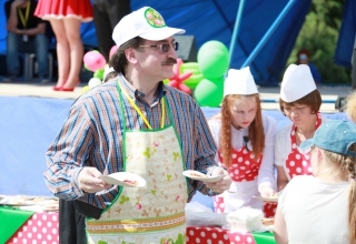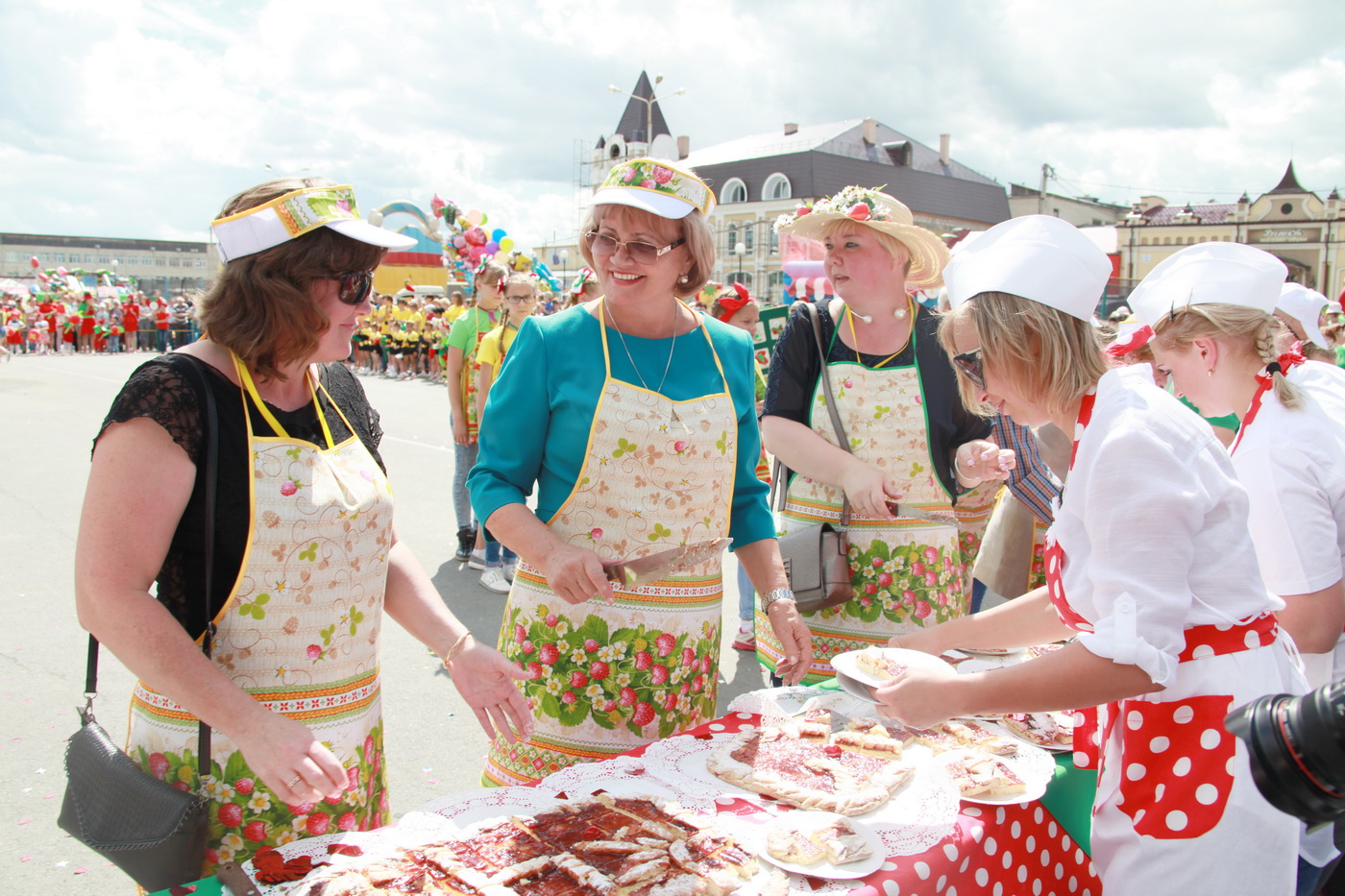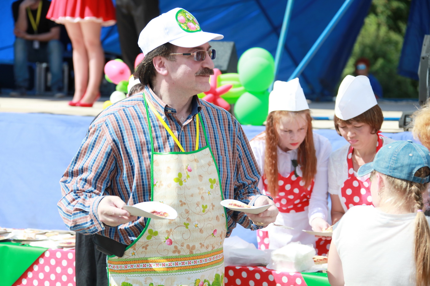Гигантский десятиметровый земляничный пирог испекли повара детского сада №1. Его дегустация стала квинтэссенцией «Земляничного джема». Людмила Бабушкина, Даниил Крамер, Светлана Учайкина, Алексей Половников и Татьяна Чикунова разрезали пирог и угощали участников карнавала и гостей, собравшихся на городской площади.