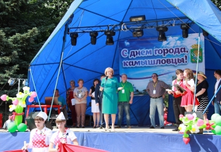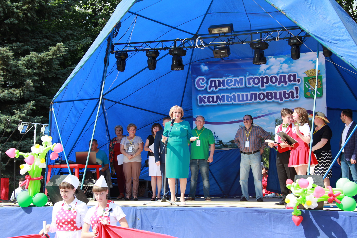 Министр культуры региона Светлана Учайкина, впервые участвовавшая в празднике, отметила: аромат земляники такой, что невозможно дождаться момента презентации гигантского земляничного пирога. Она пожелала Камышлову благополучия и процветания, поздравила жителей с Днем рождения города.