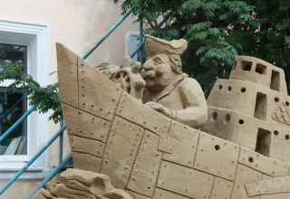 Жюри фестиваля песчаных фигур также отметило работу «Дума», выполненную директором Детской художественной школы Андреем Гуриным и преподавателем Ольгой Гуриной.