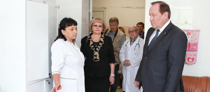 Глава Камышловского муниципального района Евгений Баранов, отмечая большую помощь в поддержке учреждений здравоохранения со стороны депутата от территории Людмилы Бабушкиной и министра здравоохранения Игоря Трофимова, попросил обратить внимание на оснащение медицинских кабинетов образовательных учреждений, как детских садов, так и школ.