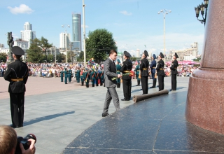 «У горожан есть все основания гордиться историей, чтить традиции, с уважением относиться к ветеранам - тем, кто внес значительный вклад в развитие промышленности, науки, культуры, спорта. Екатеринбург заслуживает широкий, красивый, яркий, замечательный праздник - День города», - сказал в приветственном слове глава администрации Екатеринбурга Александр Якоб.
