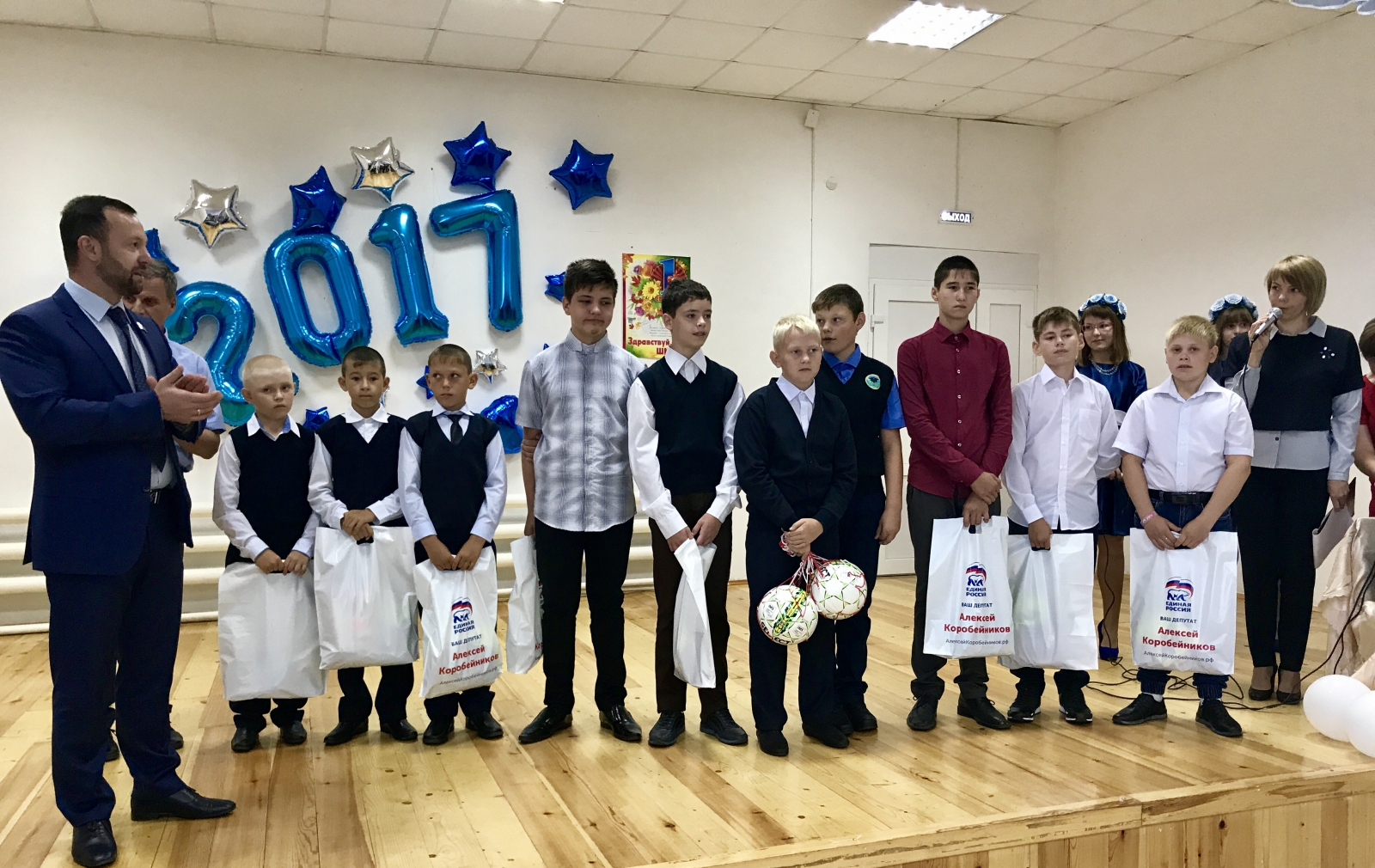 Свои поздравления ученикам и педагогическим коллективам депутат начал с Вновь–Юрмытской общеобразовательной школы Талицкого городского округа. Алексей Коробейников подарил школьной сборной команде по футболу фирменную экипировку и спортивный инвентарь.