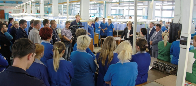 Председатель Законодательного Собрания Свердловской области Людмила Бабушкина встретилась с коллективом «Камышловского электротехнического завода – филиала ОАО «Объединенные электротехнические заводы» («ЭЛТЕЗА»). Вместе со спикером парламента во встрече приняли участие исполняющий обязанности главы Камышлова Алексей Половников и генеральный директор предприятия Андрей Мокин.
