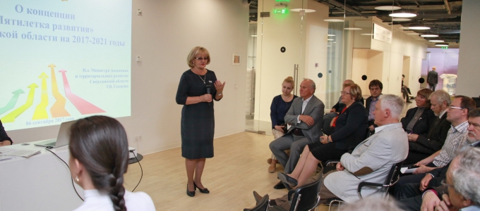 Концепцию «Пятилетки развития» участникам дискуссии представила исполняющая обязанности министра экономики и территориального развития Свердловской области Татьяна Гладкова.