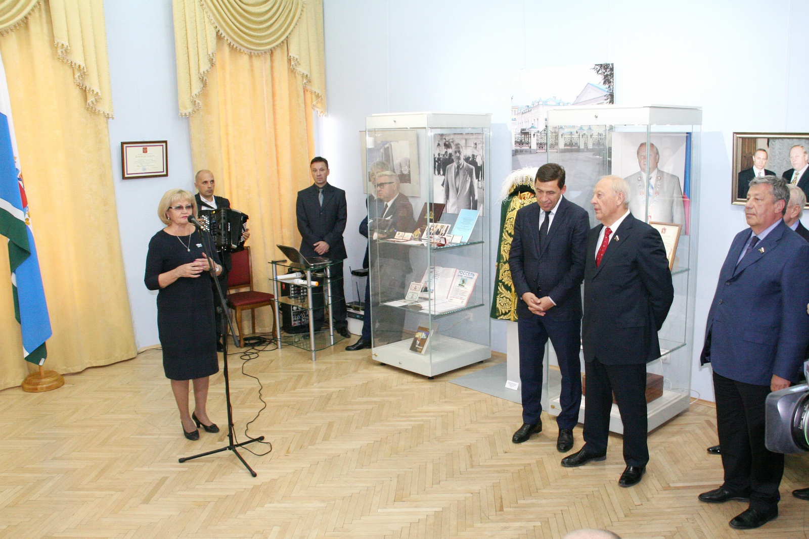 В основе ее экспозиции – архивные документы, видео и фотоматериалы, экспонаты, переданные музею самим Эдуардом Росселем. Всего юбиляр пожертвовал областному музею около двух тысяч предметов, документов и фотодокументов. Это, в том числе, подарки губернатору от различных учреждений, делегаций, руководителей республик, областей, иностранных государств.